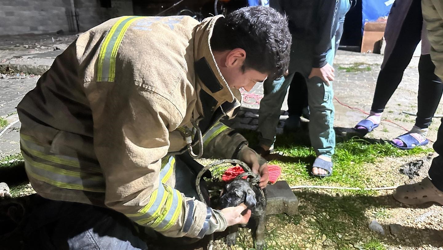 Hatay’ın Antakya ilçesinde 17 metre derinliğindeki sondaj kuyusuna düşen yavru köpeği, itfaiye ekipleri kurtardı.