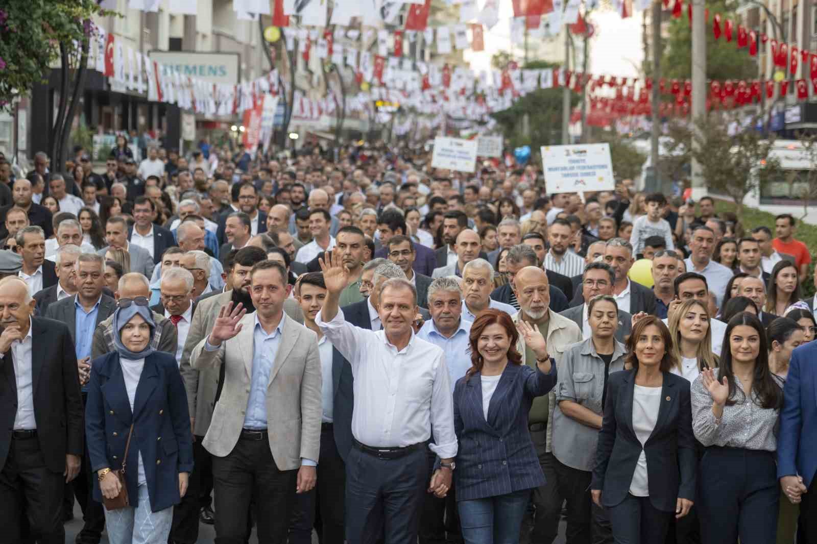 Büyükşehir Belediyesinin düzenlediği, ilk günden renkli görüntülere sahne olan Uluslararası Tarsus Festivali, Başkan Vahap Seçer’in öncülüğündeki kortej yürüyüşüyle resmi olarak başladı. Binlerce Tarsuslunun katıldığı yürüyüşte Başkan Seçer eşi Meral Seçer, Tarsus Belediye Başkanı Ali Boltaç ve beraberindekiler ile Aznakay Parkı’ndan Yarenlik Alanı’na kadar vatandaşlar, maskotlar ve Mersin Büyükşehir Belediye Bandosu eşliğinde yürüdü. Korteje, Tarsuslular balkonlardan alkışlar ve meşalelerle eşlik etti.