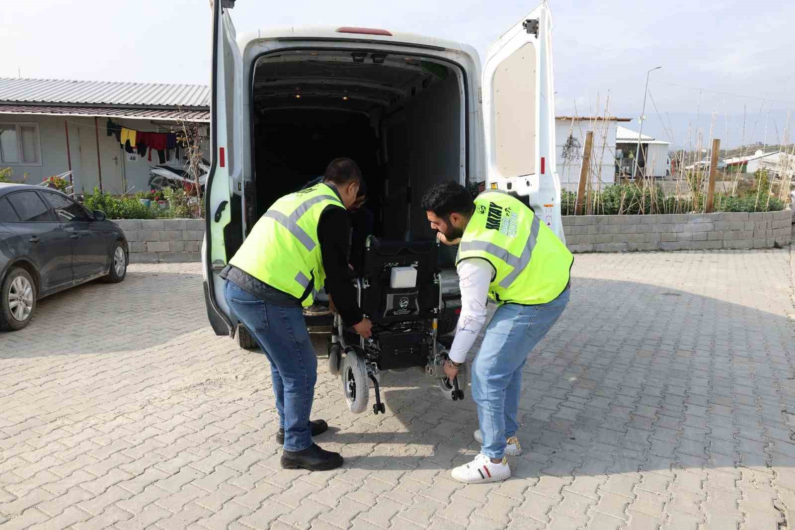 Hatay Büyükşehir Belediyesi, il genelinde yaptığı çalışmalarla engelli vatandaşların sağlık ihtiyaçlarını giderecek ve sosyal hayatlarını kolaylaştıracak adımlar atmaya devam ediyor. HBB Sağlık ve Sosyal Hizmetler Dairesi Başkanlığı tarafından engelli bireylere yönelik olarak sürdürülen çalışmalar kapsamında 8 manuel ve 3 adet de akülü olmak üzere toplamda 11 adet tekerlekli sandalye sahiplerine teslim edildi. Büyükşehir Belediyesi, Defne ilçesi Çekmece Mahallesi Abdurrahman Melek Konteyner Kent’te yaşayan Türkan Alaş’ın zorlu yaşam mücadelesinde tekerlekli sandalyesiyle destek buldu.