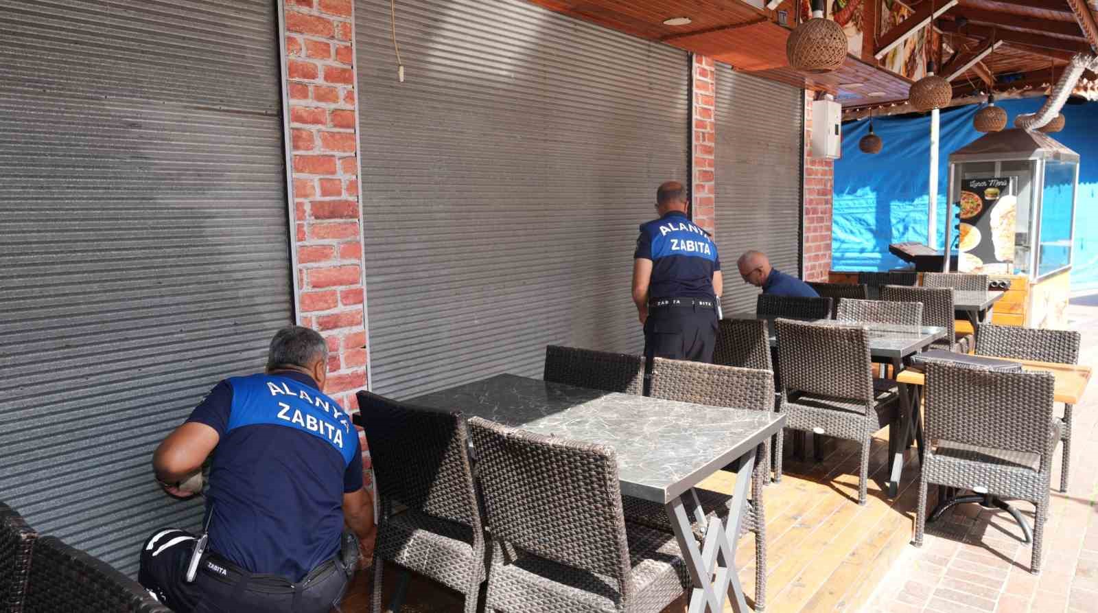 Denetimler kapsamında Şekerhane Mahallesi’nde faaliyet gösteren bir işletmenin, dürüm tezgahını cami avlusunda hortumla yıkadığı tespit edildi. Kamuya açık alanların hijyenine aykırı şekilde yapılan sözkonusu durum nedeniyle işyerine cezai işlem uygulanırken, Çarşı Mahallesi’nde faaliyet gösteren bir barın önündeki bariyerler üzerinde dans eden şahıs nedeniyle kamu düzeninin bozulduğu belirlendi. Her iki işletme, Alanya Belediyesi Encümeni kararıyla mühürlenerek geçici süreyle ticaretten men edildi.