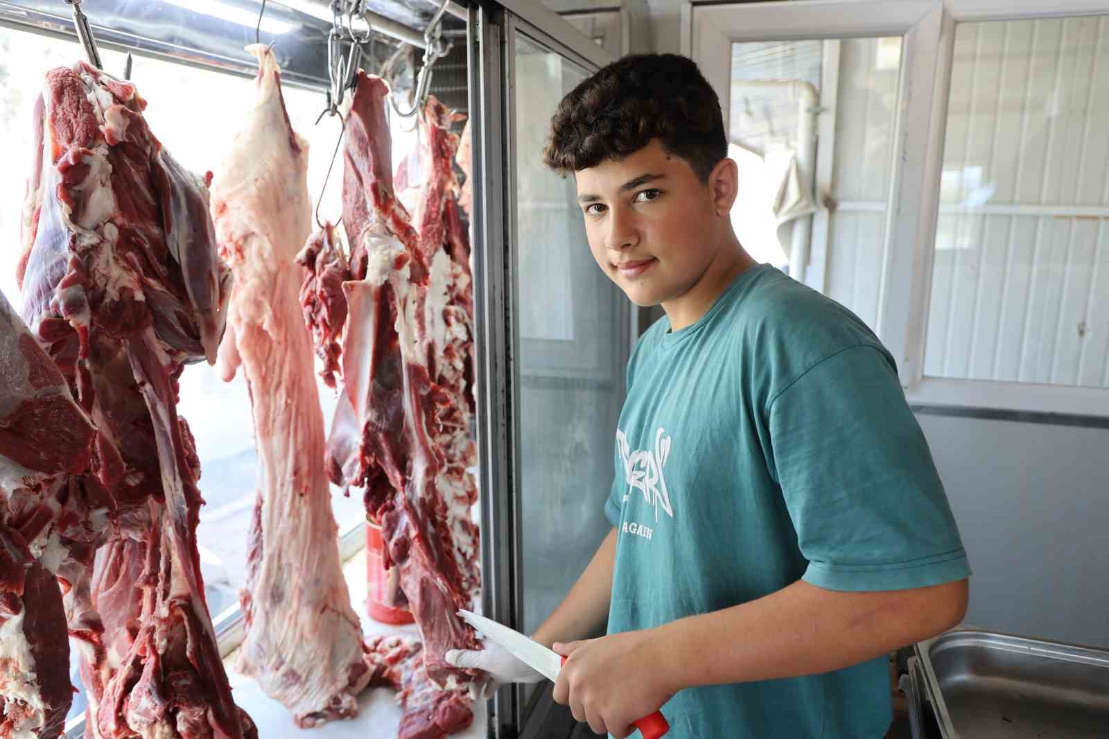 Hatay’da yaşıtlarının aksine telefonla oyun oynamak yerine aile mesleği kasaplığını öğrenen 14 yaşındaki Muhammed Enes Başak, usta elleriyle eşsiz tatlara lezzet veriyor.