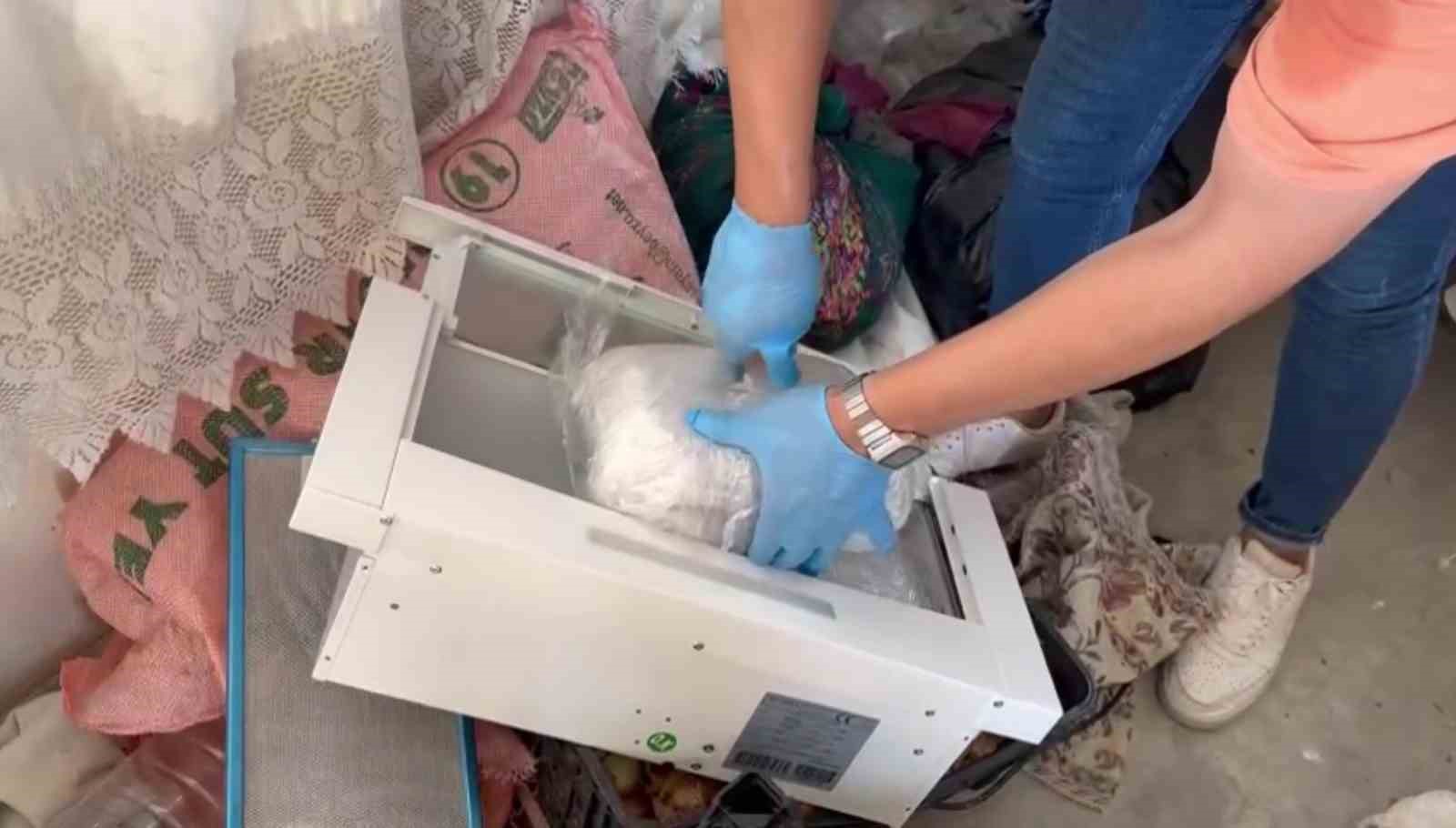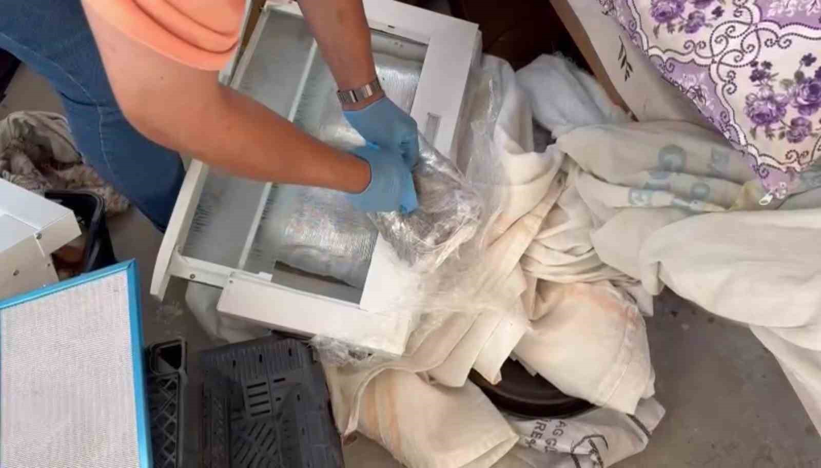 Narkotik köpeği evde yaptığı aramada kutu içerisindeki aspiratöre tepki verdi. Polisler aspiratörünün içini açtığında 6 pakette 7 kilo 300 gram esrar ele geçirdi. Evde uyuşturucunun yanı sıra ruhsatsız tabanca ve 676 mermi de ele geçirildi.