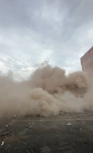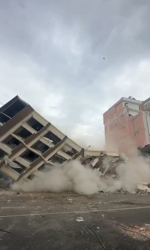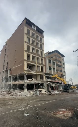 Hatay’ın Antakya ilçesinde 8 katlı binanın iş makinesinin dokunuşuyla kontrollü olarak yıkıldığı anlar kameraya yansıdı.
