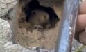Tahliye bacasına düşen tavşan kurtarıldı