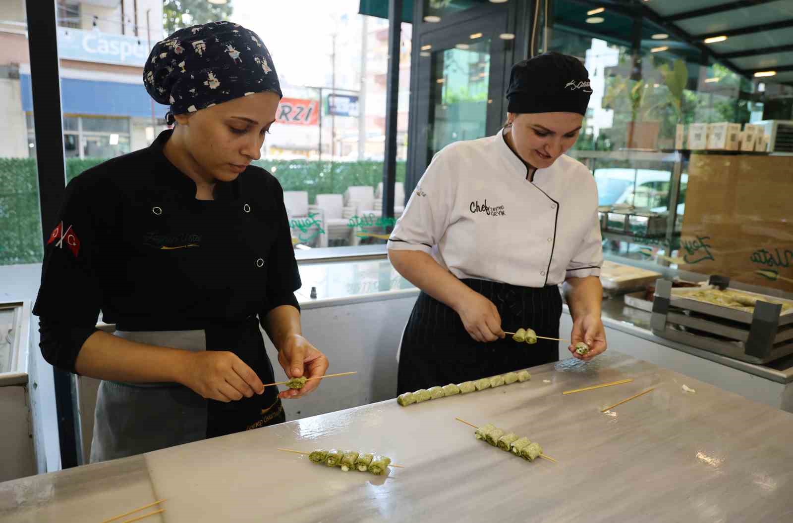 İhlas Haber Ajansı’na konuşan Zeynep Geyik, “Adana kebabıyla meşhur bir ilimiz. Biz de bu ürüne çöp şiş ismini kattık. Çöp şiş katmeri normal katmerden yapıyoruz. Umduğumuzdan güzel gidiyor. Bizim patentli ürünümüz Adana Bombası var. İnsanlar artık hem onu hem de çöp şiş katmeri yiyorlar. Şerbetli tatlılara oranla daha hafif bir tatlı olduğu için insanlar güzel talep gösteriyor” dedi.