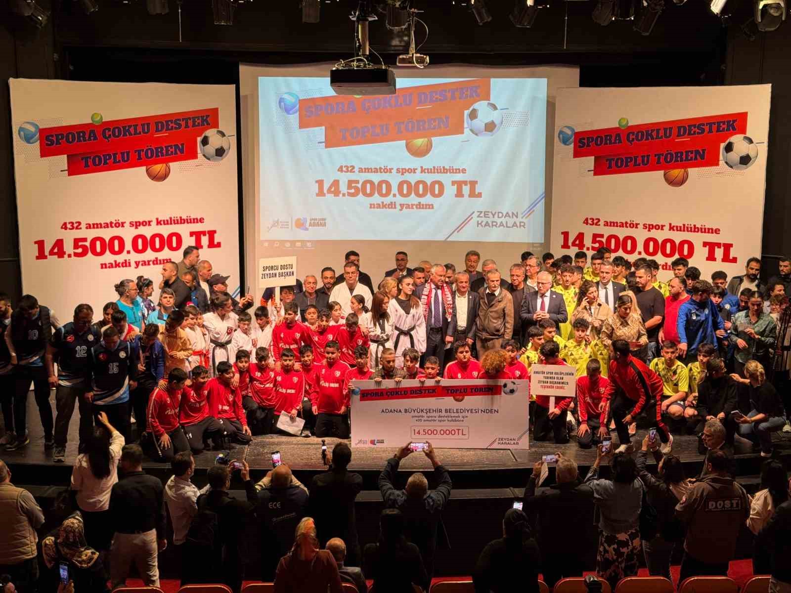 Adana Büyükşehir Belediyesi, 432 amatör spor kulübüne 14 milyon 500 bin lira destekte bulundu.