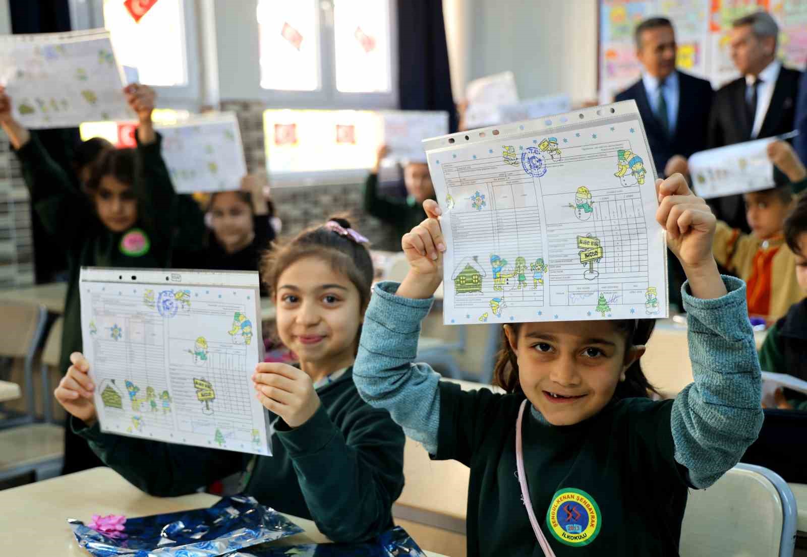 Karne alan 2. sınıf öğrencilerinden Elif Azra Gözükara, “Karnem çok güzel geldi. Derslerim çok iyi. Ara tatilde de hem oyun oynayacağım hem de ders çalışacağım” dedi.