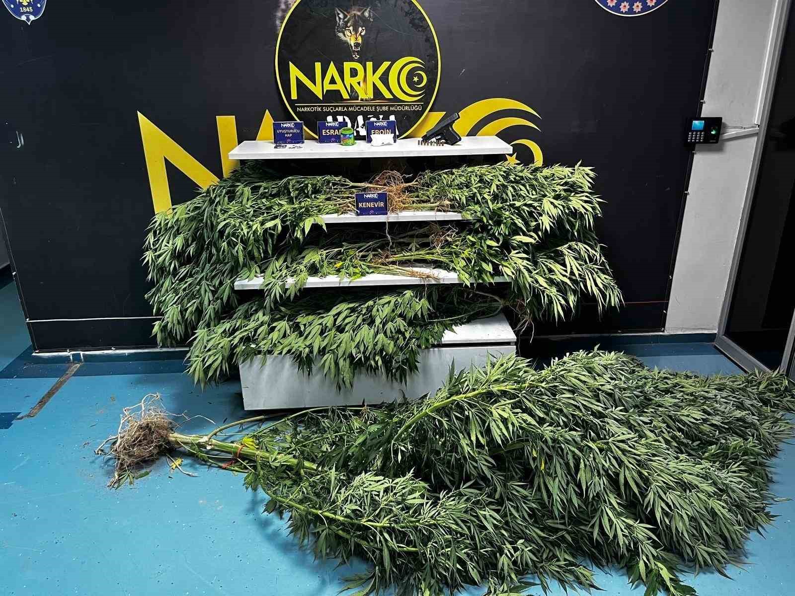 Yapılan çalışmalarda ekipler, 7 kilo 708 gram esrar, 3 bin 633 adet uyuşturucu hap, 942 gram bonzai, 259 gram bonzai hammaddesi, 874 gram metamfetamin, 60 kök Hint keneviri ve 4 adet ruhsatsız tabanca ile 2 adet tüfek ele geçirdi.