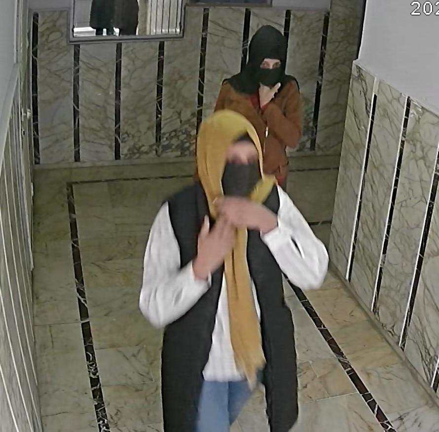 Öte yandan birlikte hareket eden kadınların apartmanlardan çıkış anları ise anbean güvenlik kamerasına yansıdı.