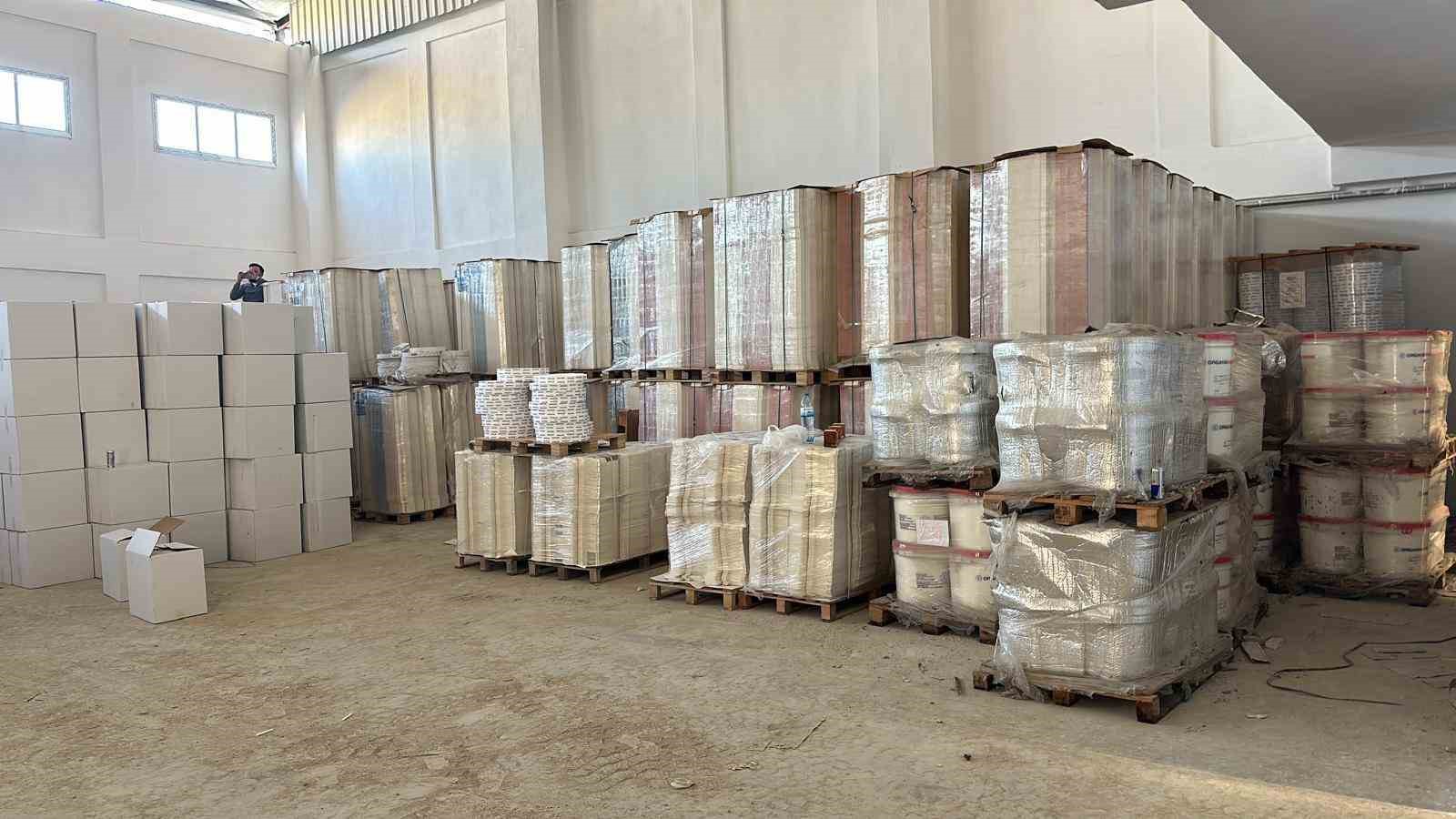 Yapılan operasyonda depoda, 32 milyon 500 bin kaçak makaron, 198 bin 700 mükerrer sigara bandrolü, 10 kilogram makaron yapımında kullanılan kağıt, 3 milyon 500 bin boş makaron kutusu, 4 bin 680 sigara filtresi yapımında kullanılan elyaf madde, 8 bin 750 kilogram sıvı ve toz halinde olmak üzere yapıştırıcı ele geçirdi.