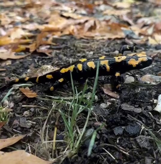 Semender, tren raylarından uzak bir bölgeye taşınarak görüntülendi. Lekeli semender bir süre sonra gözden kayboldu.