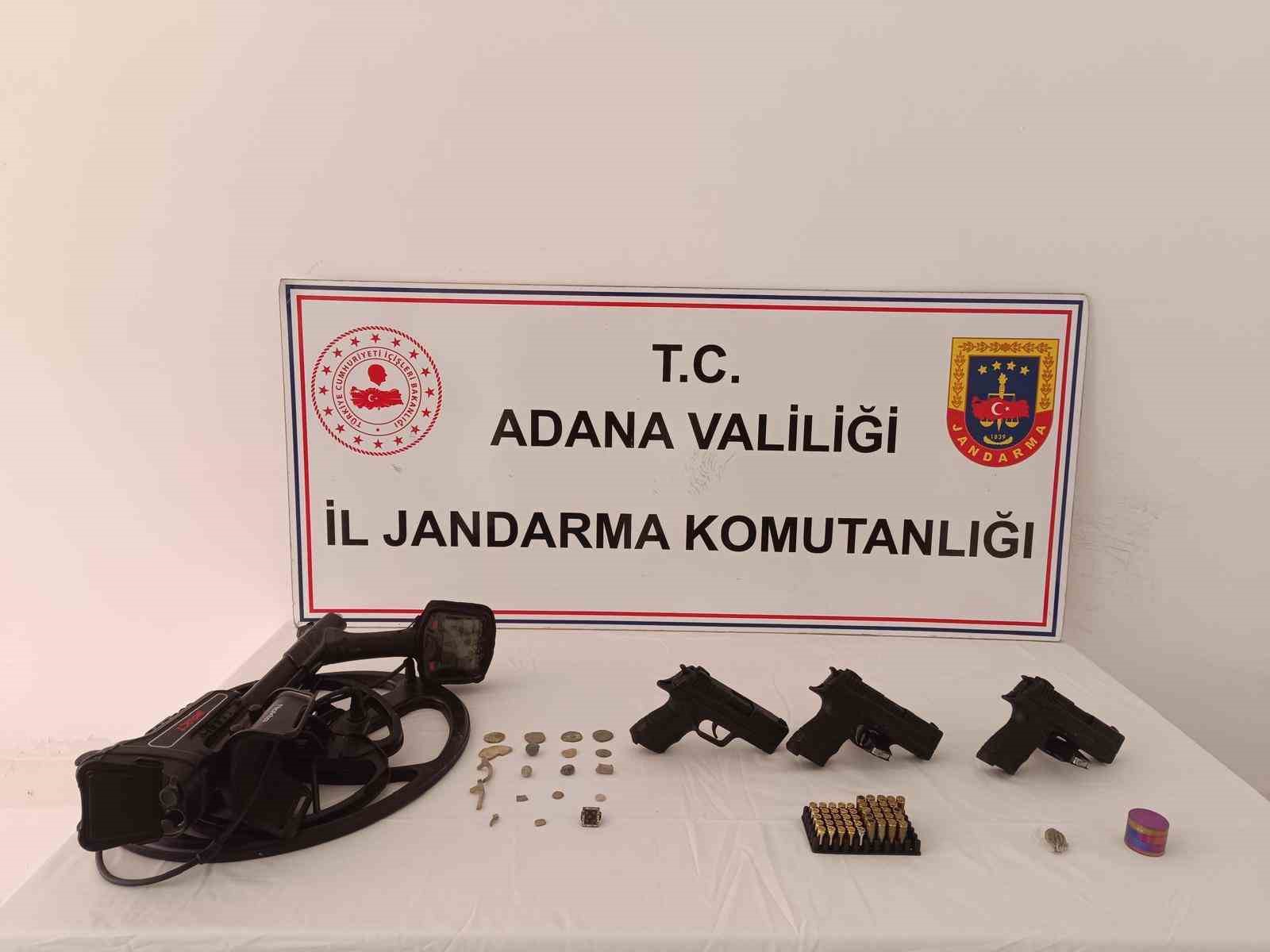 Adana’da jandarma ekiplerinin bir eve düzenledikleri operasyonda 3 ruhsatsız tabanca, 1 roma dönemine ait olduğu değerlendirilen yazılı kesme taş ve 19 tarihi obje ele geçirildi.