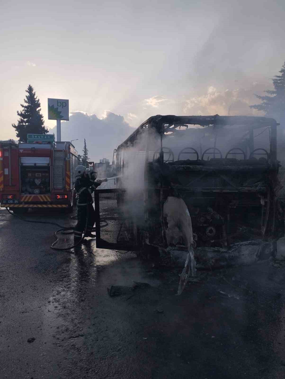 Adana’da seyir halindeki toplu taşıma aracı alev alev yandı. Araçta yolcu bulunmaması muhtemel faciayı önledi.