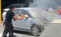 Kazadan sonra sanayiye götürülen araç alev aldı