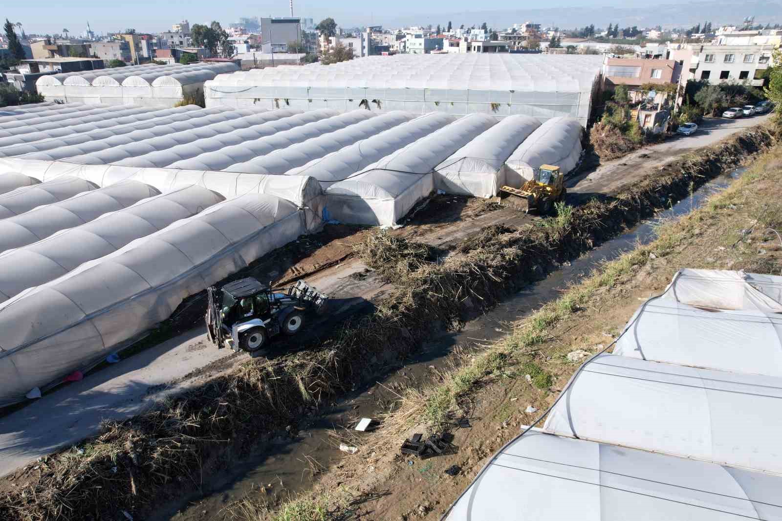 Akdeniz Belediyesi, aşırı yağışlı günlerde zor anlar yaşayan ve su taşkınları nedeniyle zarara uğrayan üreticiler ile sera ve tarım arazilerini korumak amacıyla ilçe sınırlarından geçen sulama kanallarında temizlik ve ıslah çalışması yaptı.