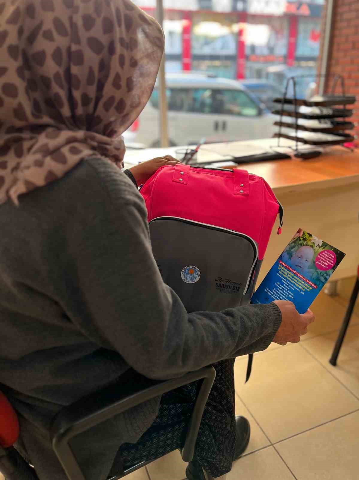 Ailelere hediye edilecek çantada, 0-3 ay arasındaki bebekler ve anneleri için birçok temel ihtiyaç malzemesinin yanında, bebek bakımı ile ilgili mutlaka bilinmesi gereken uyarıcı broşürler de bulunuyor.
