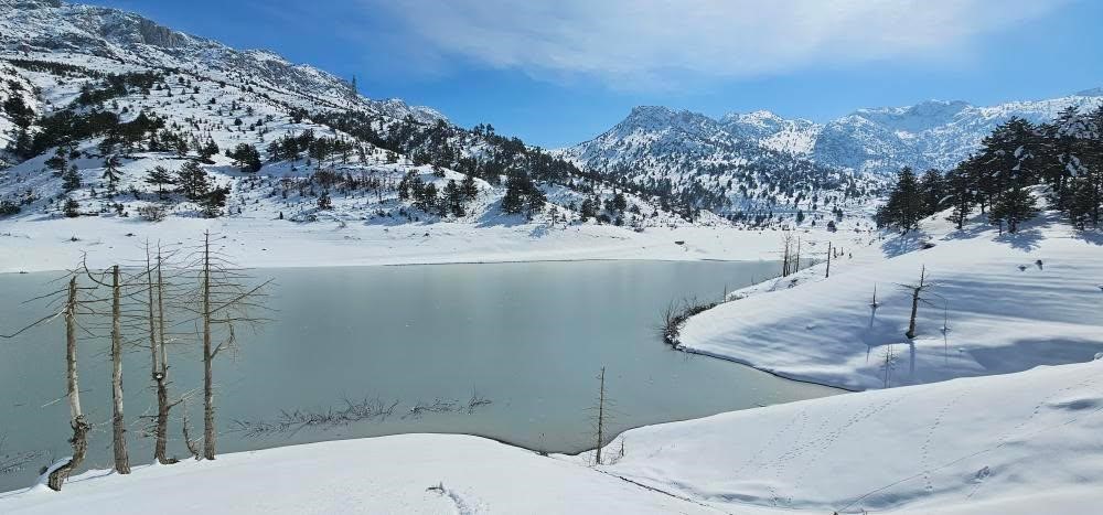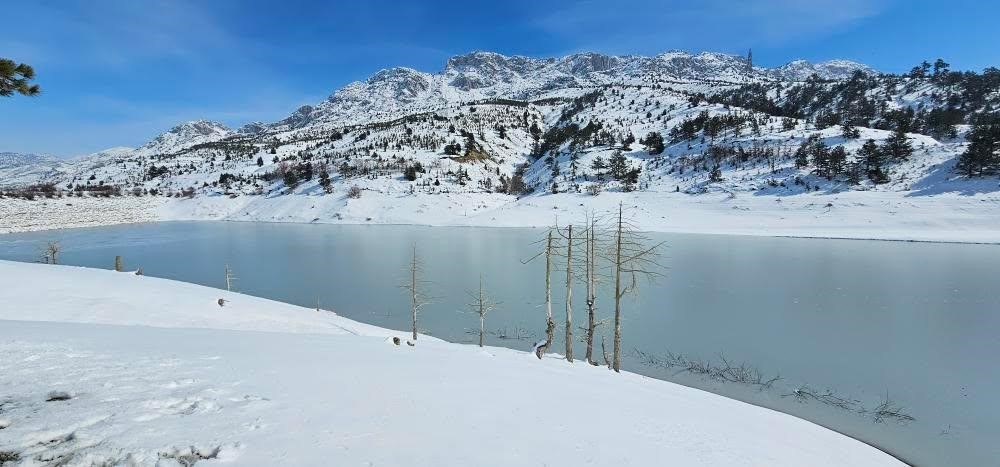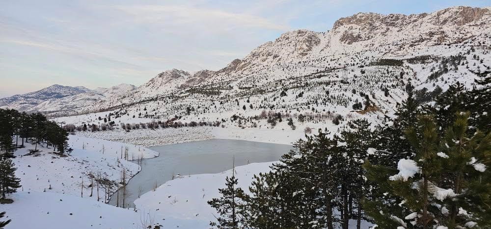 Kahramanmaraş’ta Akdeniz’in Sibirya’sı olarak bilinen ve ülkenin en soğuk bölgelerinden olan Göksun’da değirmendere göleti dondu.