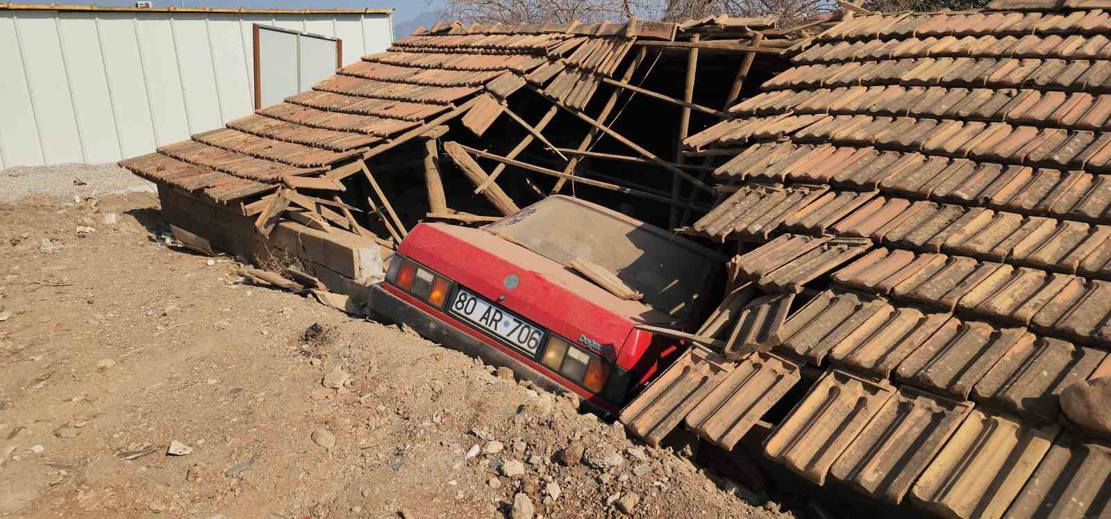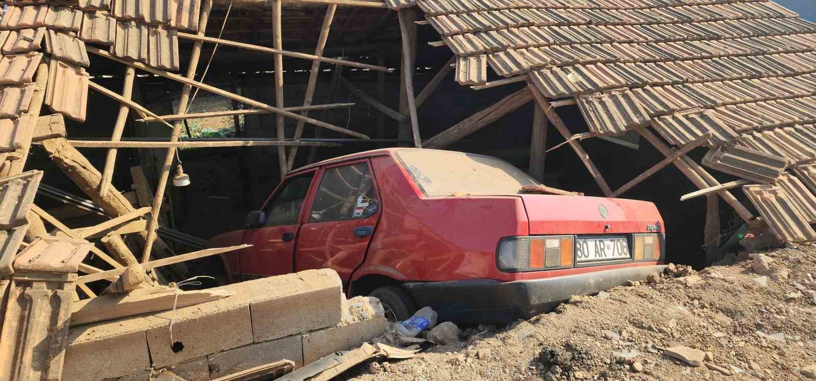 Hatay’da sürücüsünün kontrolünden çıkan araç, ahırın üzerine uçtu. Kazada sürücü yaralanırken, ahırda hasar oluştu.