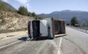 Antalya’da inşaat malzemesi yüklü kamyonet devrildi: 2 yaralı