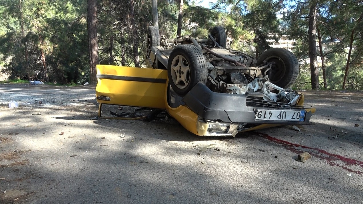 Antalya’nın Alanya ilçesinde direksiyon hakimiyetini kaybeden otomobil sürücüsü önce toprak zemine çarpıktan sonra takla atarak durabildi.