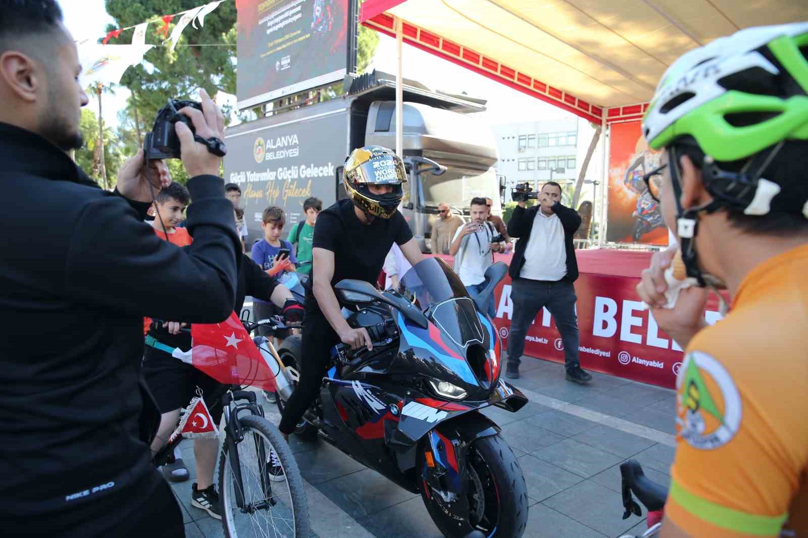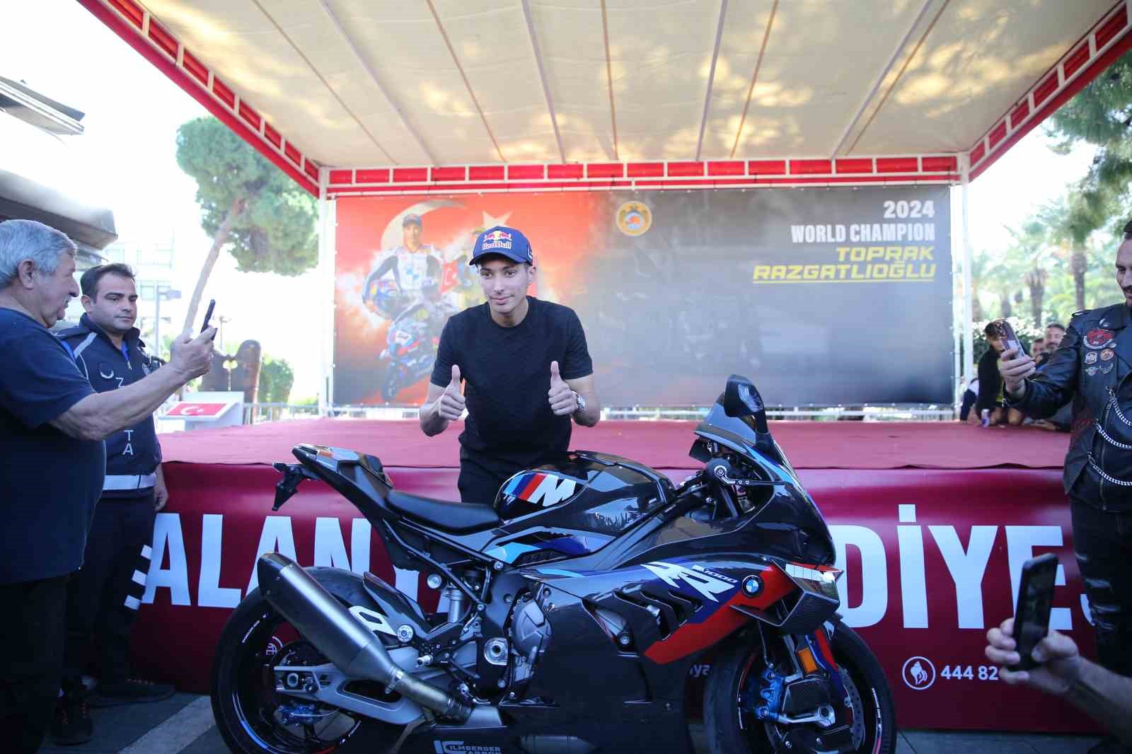 2024 Dünya Superbike Şampiyonu Milli Sporcu Toprak Razgatlıoğlu büyüdüğü şehir olan Alanya’da sevenleri ile bir araya geldi. Alanya girişinde sevenleri ile birlikte kortej eşliğinde şehre giriş yapan Razgatlıoğlu, Atatürk Anıtı önünde gerçekleşen buluşmada sevenleri ile birlikte buluştu.