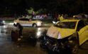Takla atan otomobil karşı şeritten gelen aracın üzerine düştü: 3 yaralı