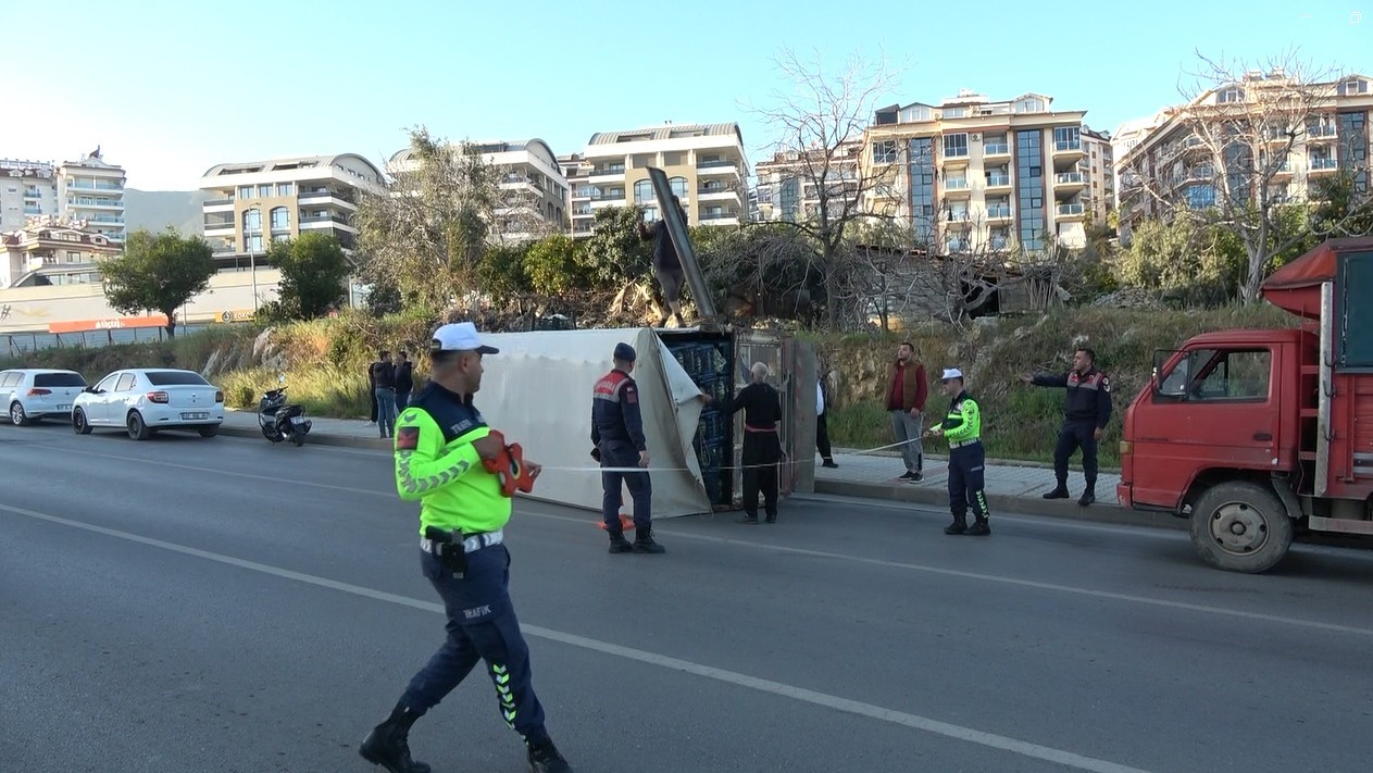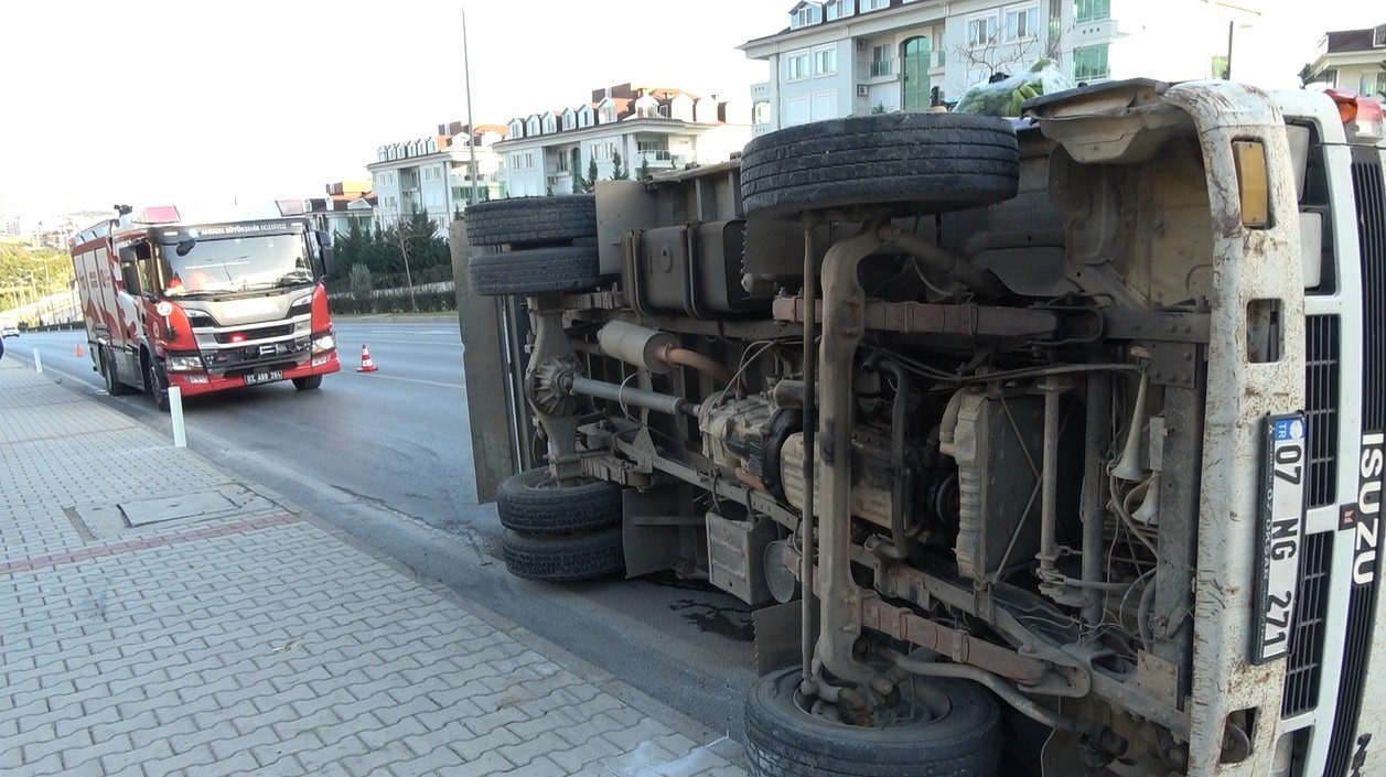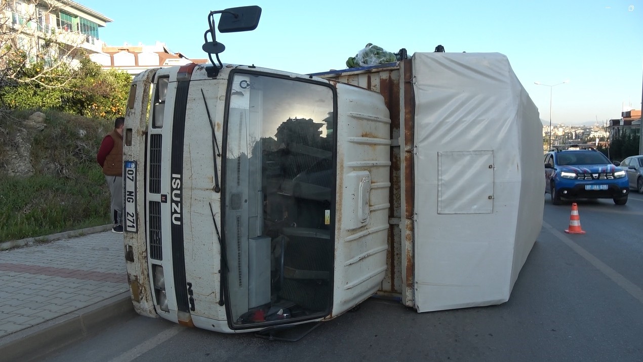 Kaza, saat 17.00 sıralarında Alanya’nın Oba Mahallesi Çevreyolu Mevlüt Çavuşoğlu Bulvarında meydana geldi. Edinilen bilgilere göre Mersin istikametinden Antalya istikametine gitmekte olan Tahsin Ç.’nin kullandığı 07 NG 271 plakalı Isuzu marka muz yüklü kamyonet, sürücünün direksiyon hakimiyetini kaybetmesi sonucu yol kenarında bulunan bordur taşına çarptıktan sonra devrildi. Çevredekilerin ihbarı üzerine olay yerine ambulans itfaiye ve jandarma ekipleri sevk edildi. Yaralı sürücü Tahsin Ç. çevredekilerin yardımı ile kamyonetten çıkarıldı. Olay yerine gelen sağlık ekiplerinin ilk müdahalesinin ardından yaralı sürücü hastaneye kaldırıldı. Kaza nedeniyle çevre yolunda uzun trafik kuyrukları meydana geldi. Kaza ile ilgili inceleme başlatıldı.