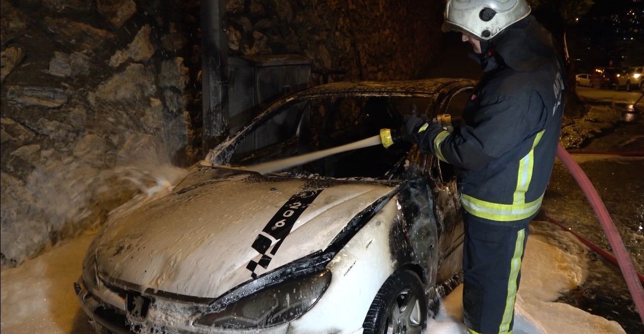 Antalya’nın Alanya ilçesinde park halindeyken alev alan otomobil kullanılamaz hale geldi.