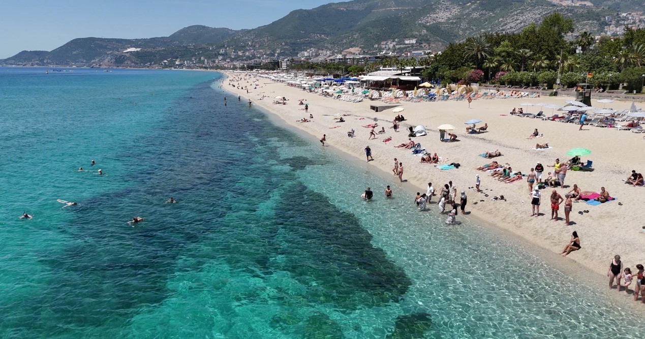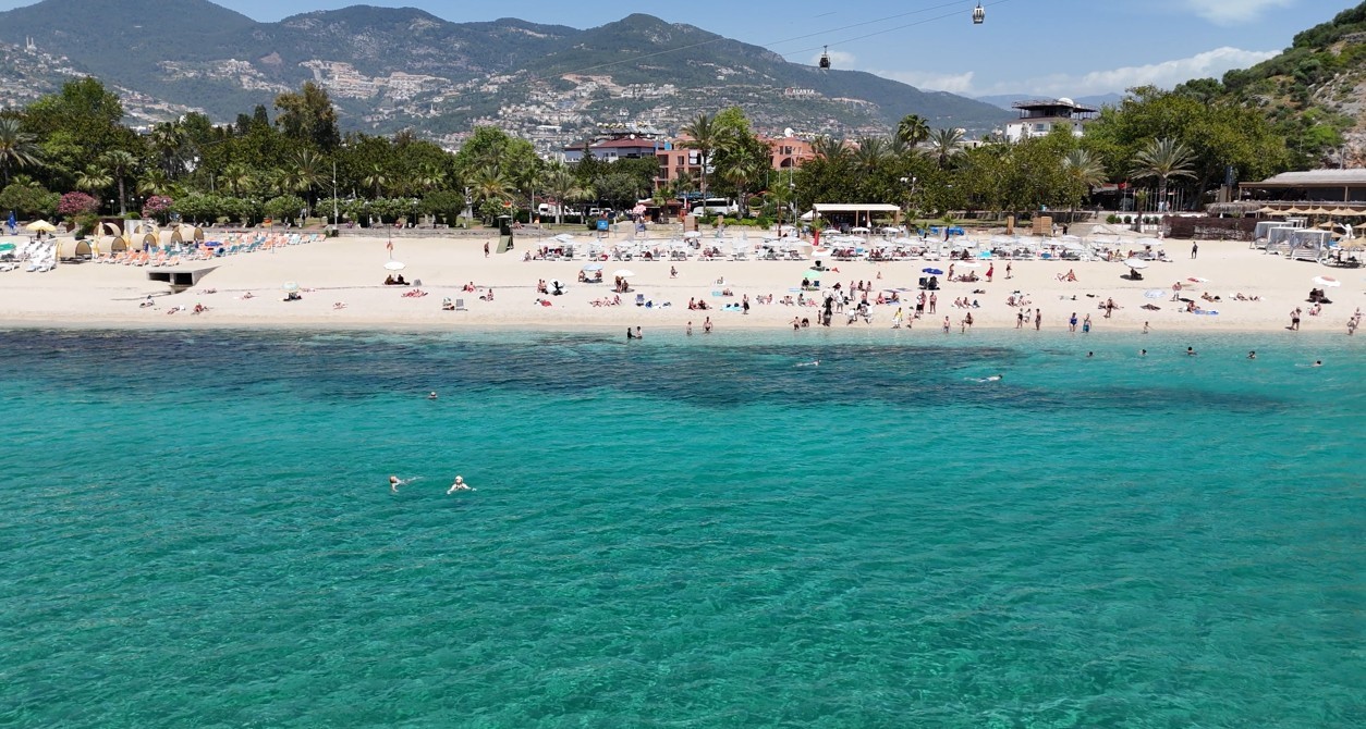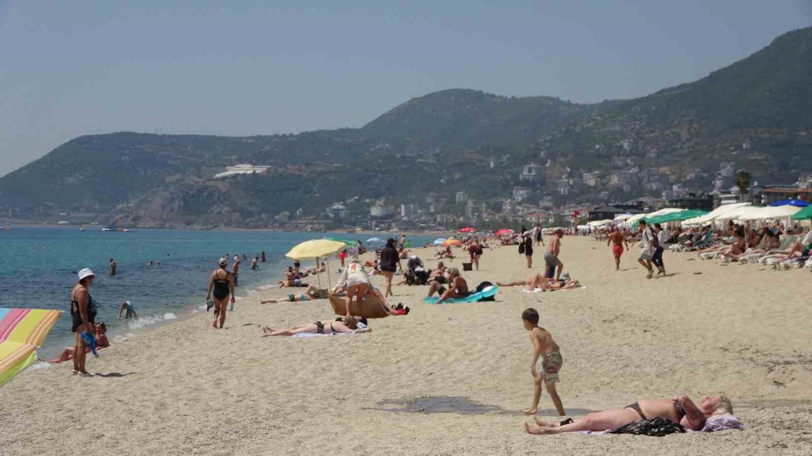 Antalya’nın Alanya ilçesinde hava sıcaklığının 30 dereceye çıktığı Mayıs ayında yerli ve yabancı turistler Kleopatra Plajı’na akın etti.