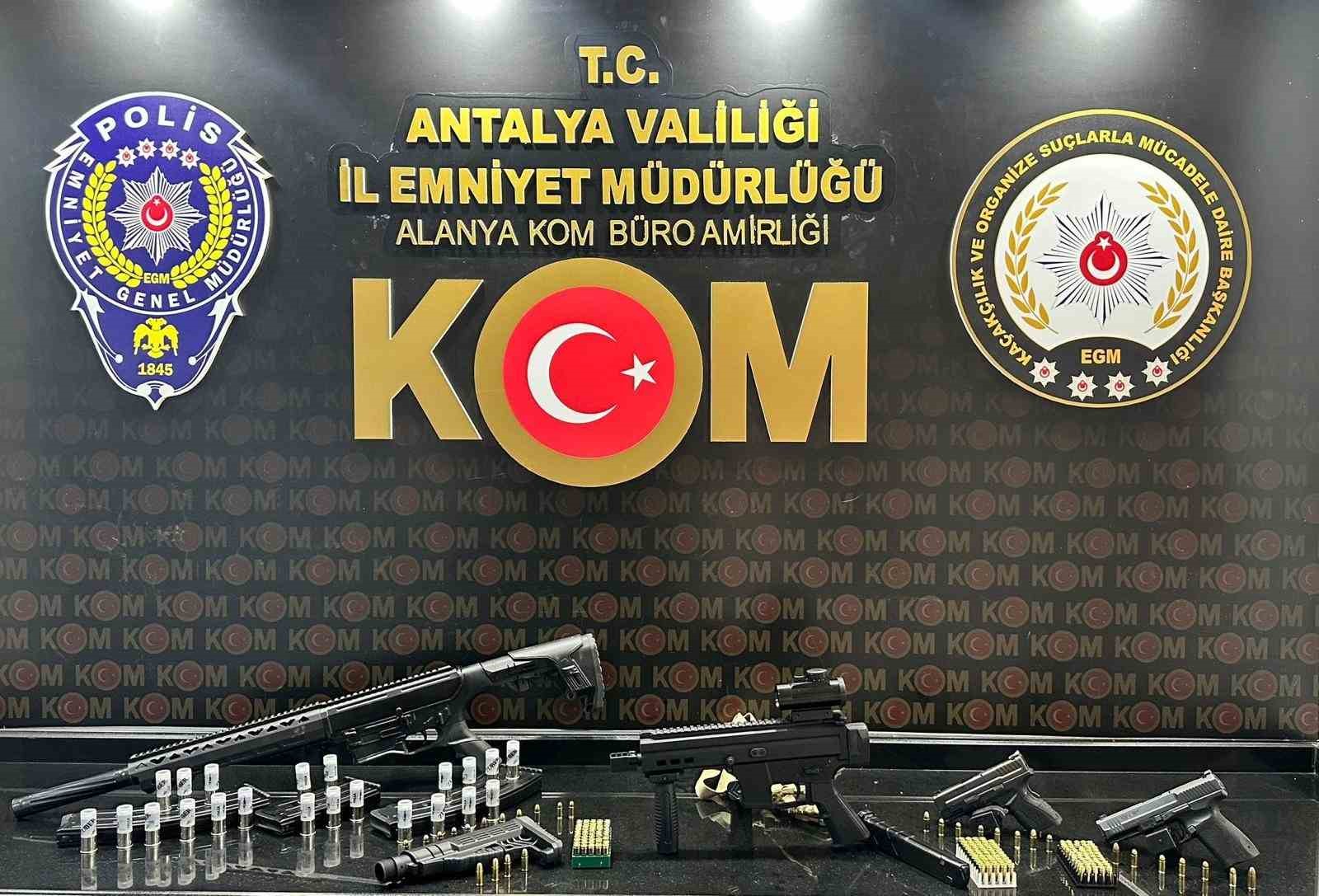 Antalya’nın Alanya ilçesinde polis tarafından yapılan operasyonda aralarında 1 adet uzun namlulu otomatik silahın da bulunduğu 12 adet tabanca ele geçirildi, 3 şüpheli gözaltına alınırken 2’si tutuklandı.