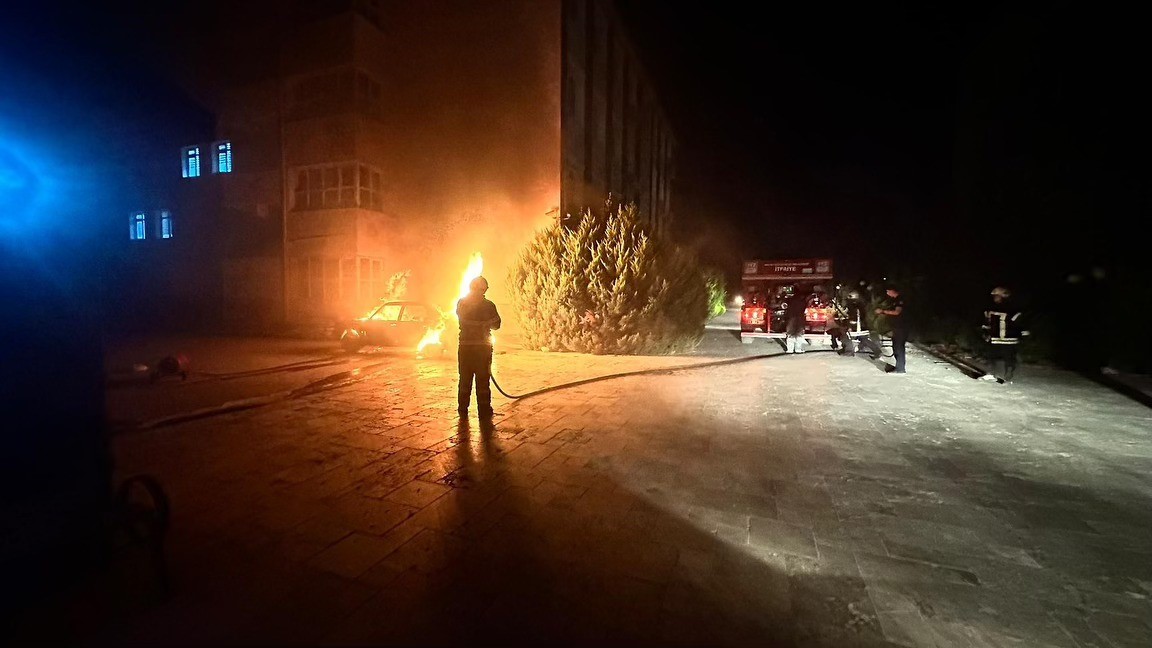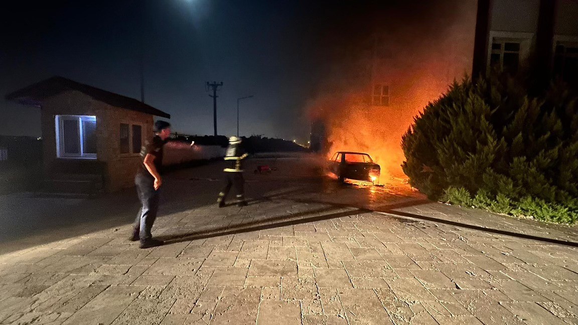Hatay’da alev alev yanan otomobil kullanılmaz hale geldi.