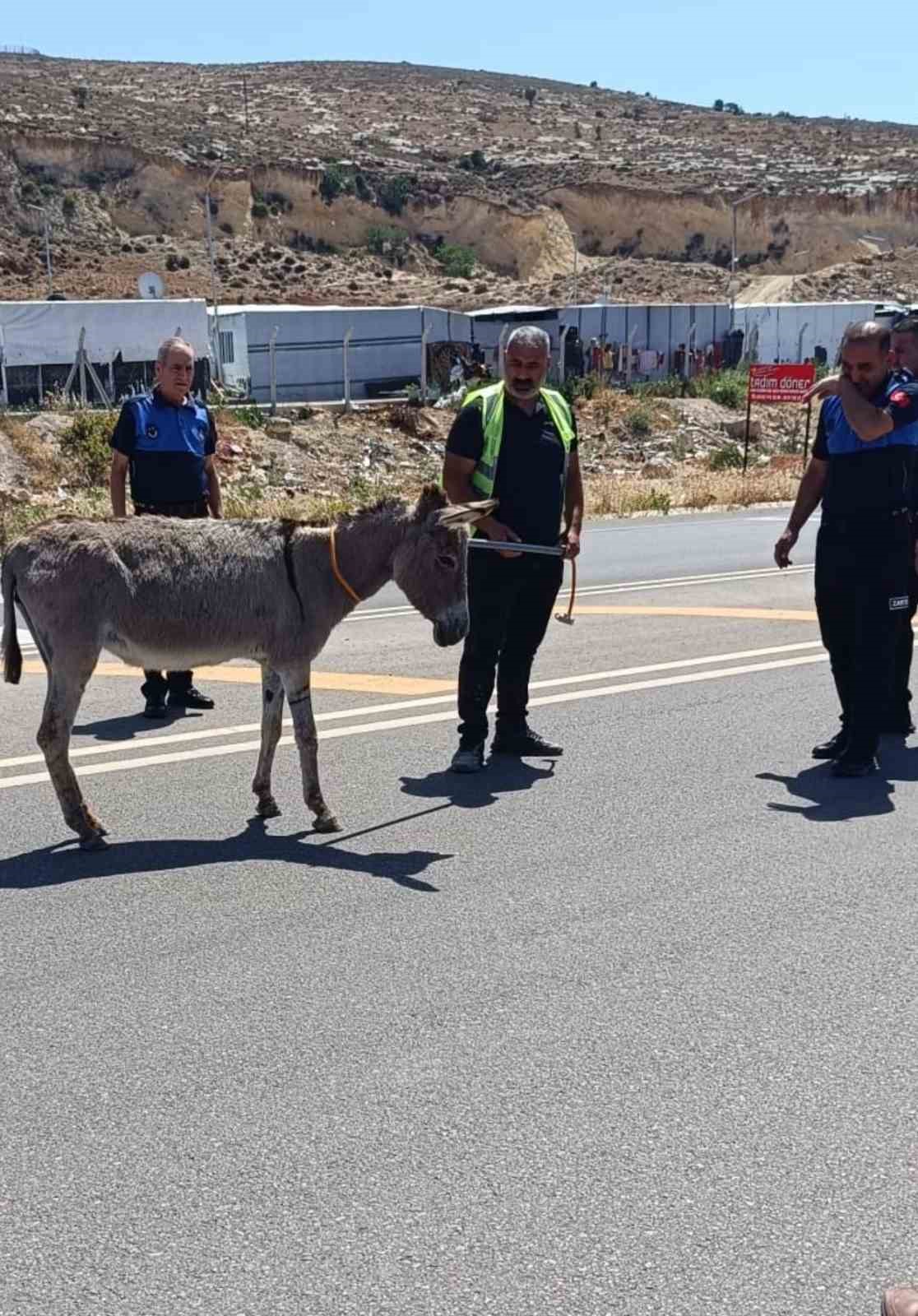 Hatay’da ana yola çıkarak trafiği tehlikeye düşüren sahipsiz eşek, zabıta ekipleri tarafından hayvan bakım ve rehabilitasyon merkezine teslim edildi.