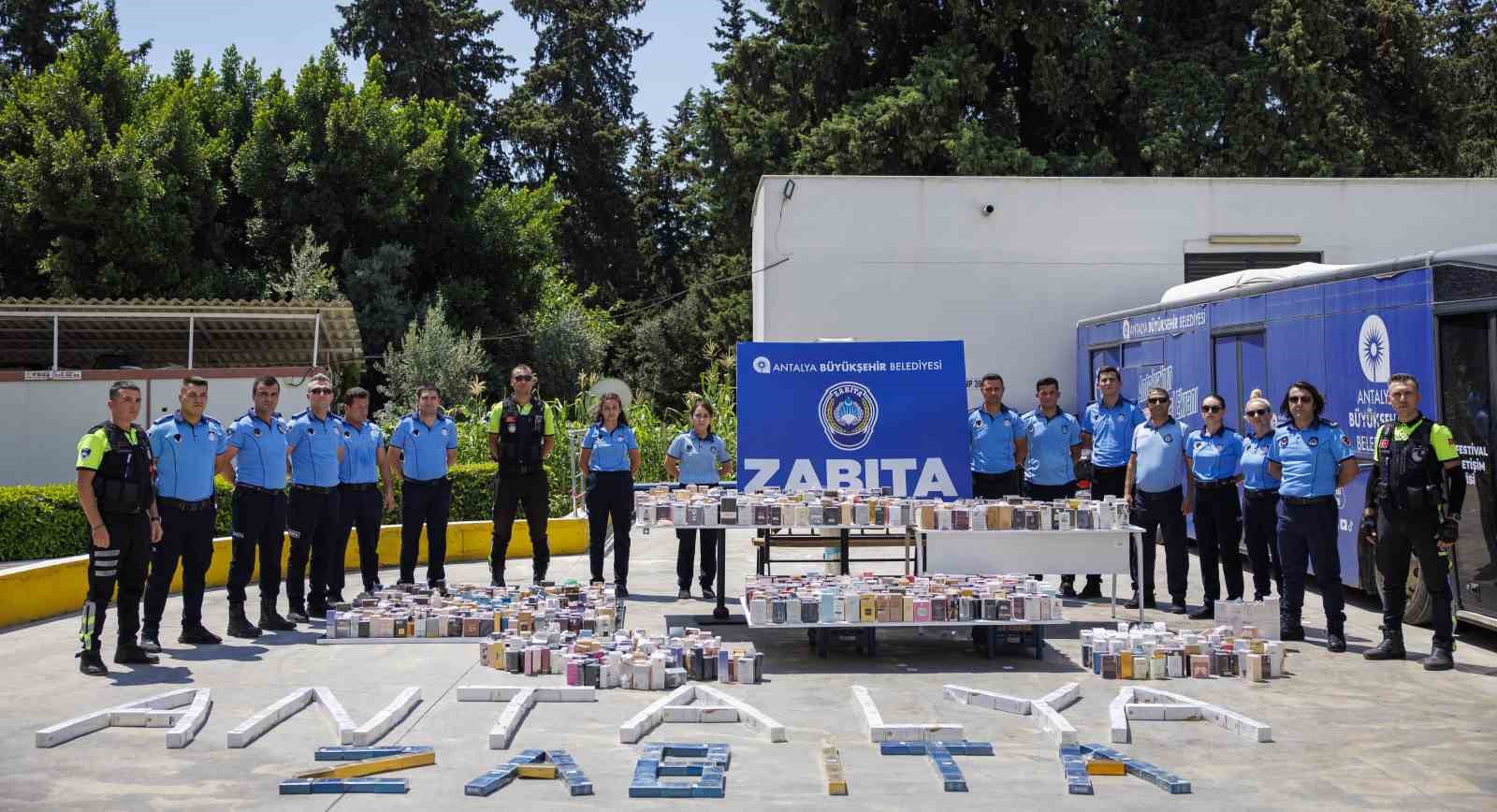 Antalya Büyükşehir Belediyesi, yaz sezonuyla birlikte Antalya’yı ziyaret eden yerli ve yabancı ziyaretçilerin huzurlu bir şekilde tatillerini geçirebilmeleri amacıyla çalışmalarını sürdürüyor. Antalya Büyükşehir Belediyesi Zabıta Dairesi Başkanlığı ekipleri, özellikle turistlerin yoğun olarak alışveriş yaptığı noktalarda denetimlerini sıklaştırdı. Zabıta ekipleri özellikle halk sağlığını tehdit edebilecek, merdiven altı üretilen sahte parfüm satan kişilere yönelik yaptığı denetimlerde binlerce sahte parfüm ele geçirdi.
