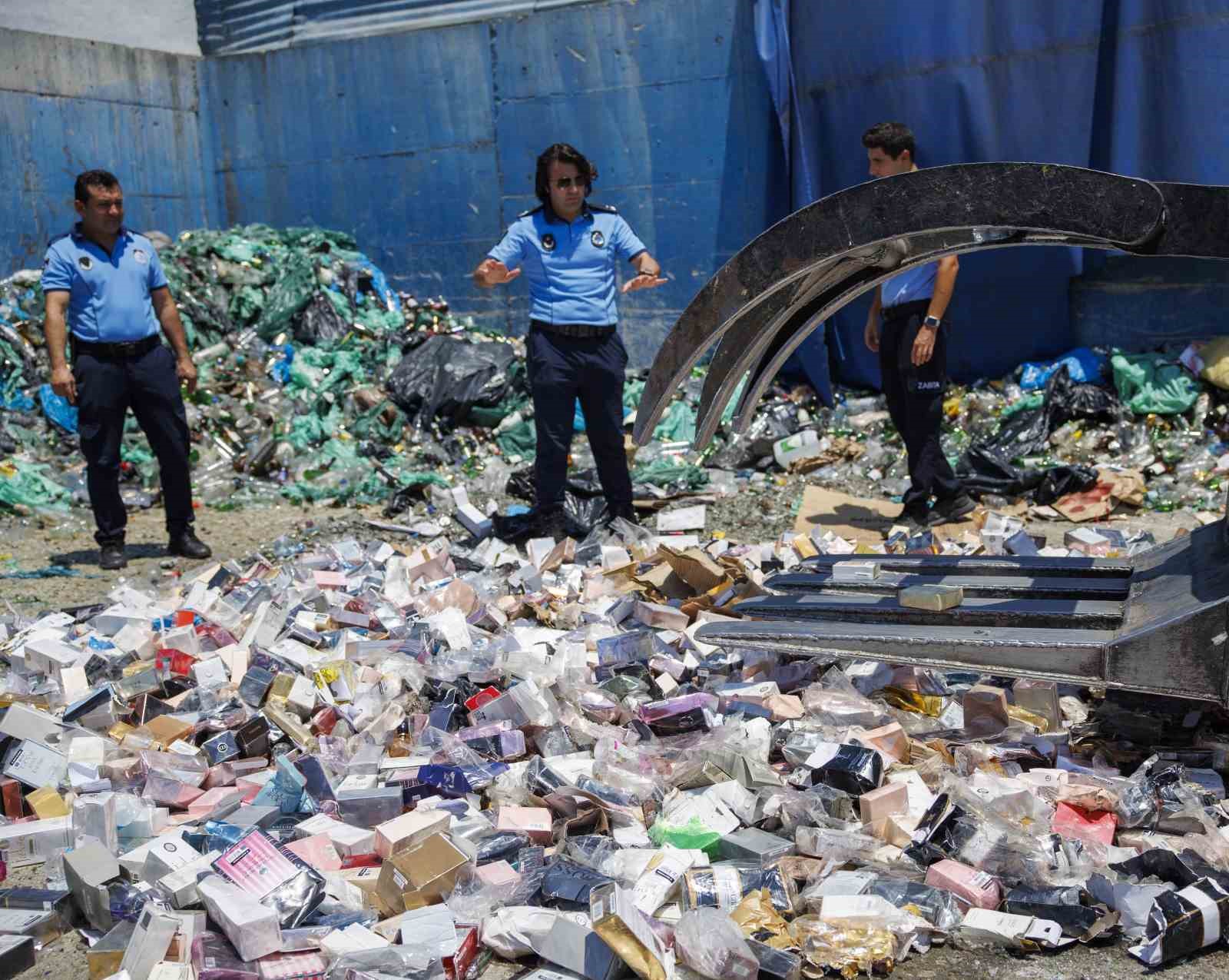 5 bin 807 şişe sahte parfüm Büyükşehir Belediyesi zabıta ekiplerince sergilenerek, daha sonra imha edilmek üzere geri dönüşüme gönderildi. Sahte parfümler dozer ile ezilerek, imha edildi. Antalya Büyükşehir Belediyesi Zabıtası yetkilileri, ünlü parfüm markalarının isimleri kullanılarak satışı yapılan sahte parfümlerin deri hastalıkları ve alerjik reaksiyonlara sebep olabileceğini belirterek, 7/24 Antalya’nın sağlığı için denetimlerin süreceğini bildirdi.