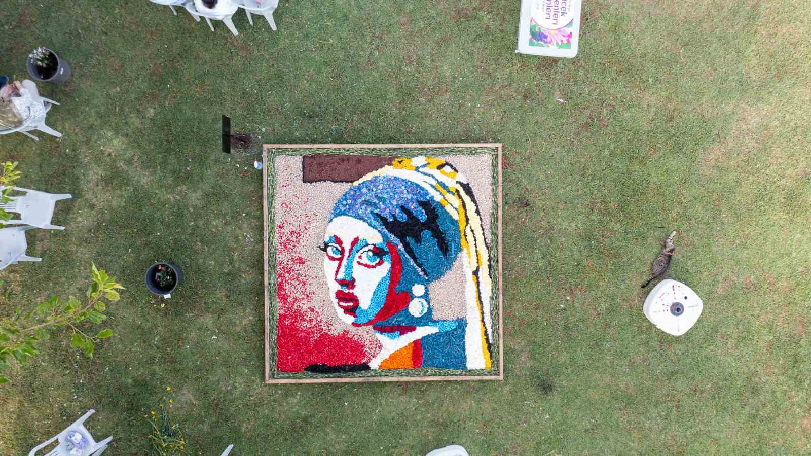 Lise öğrencileri iki gün süren yarışmada çalışmalarına ahşap zemin üzerine yerleştirilen kendilerinin hazırladıkları desen krokilerine uygun çiçek seçimlerini yaparak başladı. Ardından çiçekleri kesme ve ayıklama işlemlerinden geçiren yarışmacılar desen sınırlarını toprakla belirginleştirerek çiçekleri sabitledi. Desenlere ayrıca zemine döşenen toprak hacimlendirilerek üç boyutlu görünüm kazandırıldı. Hazırlanan zemin üzerine ise her ekip kendi desenine uygun renklerde çiçeklerle desenlerini işlemeye koyuldu.