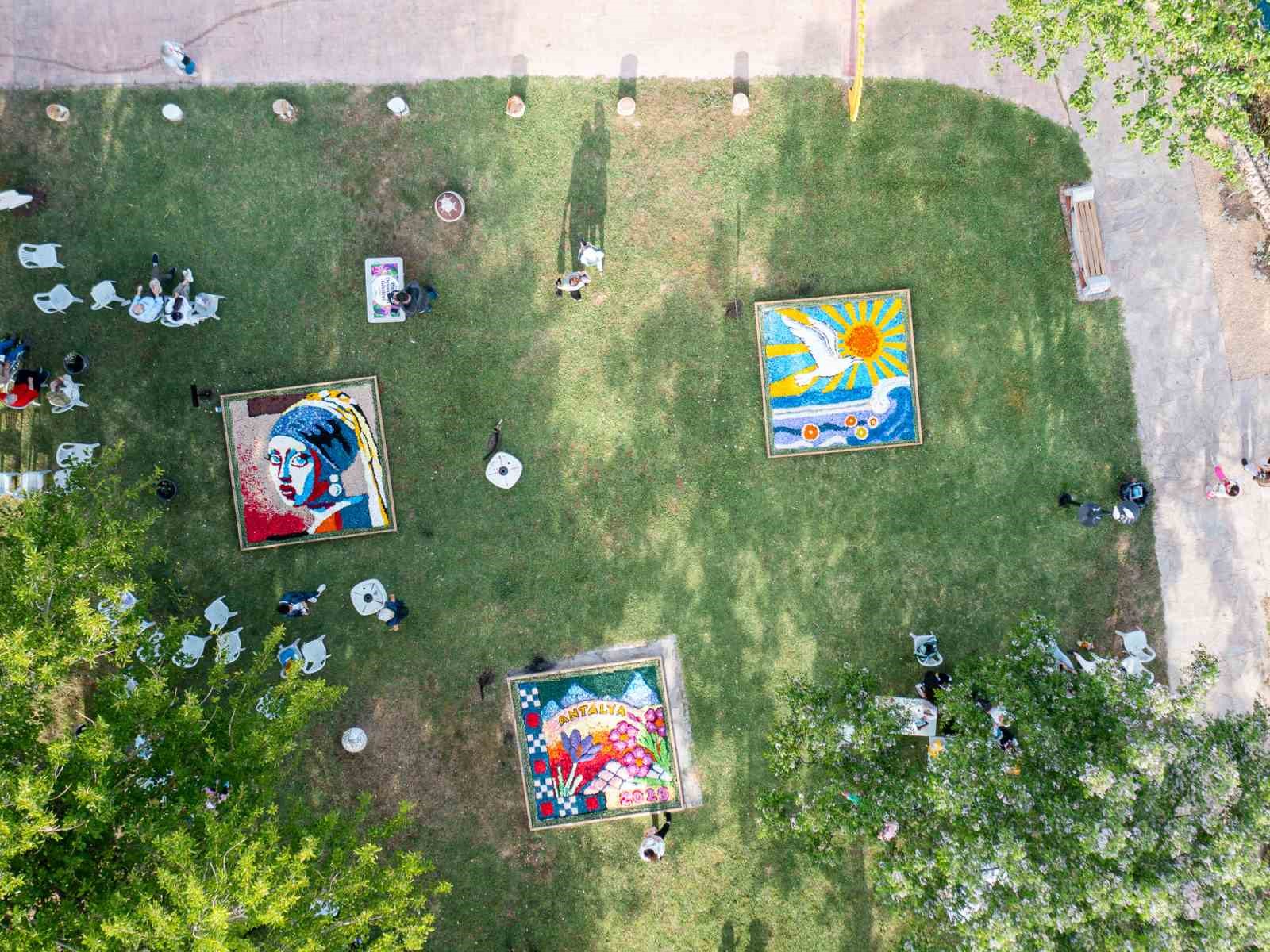 Liselerin kendi seçtikleri çiçek desenlerinde Antalya’nın simgesi haline gelen portakal, deniz, deniz feneri gibi figürlere yer verildi. Çiçek desenlerinde Antalya’nın meşhur Döşemealtı kilimi motifi de dikkat çekenler arasında yer aldı. Desenlerin oluşumunda ise kadife çiçeği, petunya, bahçe külü, karanfil, sarı papatyalar; ağaç kabuklarından elde edilerek rengarenk boyanan malçlar ve çeşitli taşlar yer aldı. Yarışmanın sonunda kazanan desenler jüri tarafından belirlendi. Tavus kuşu deseniyle ATSO Güzel Sanatlar Lisesi 1’inci oldu.