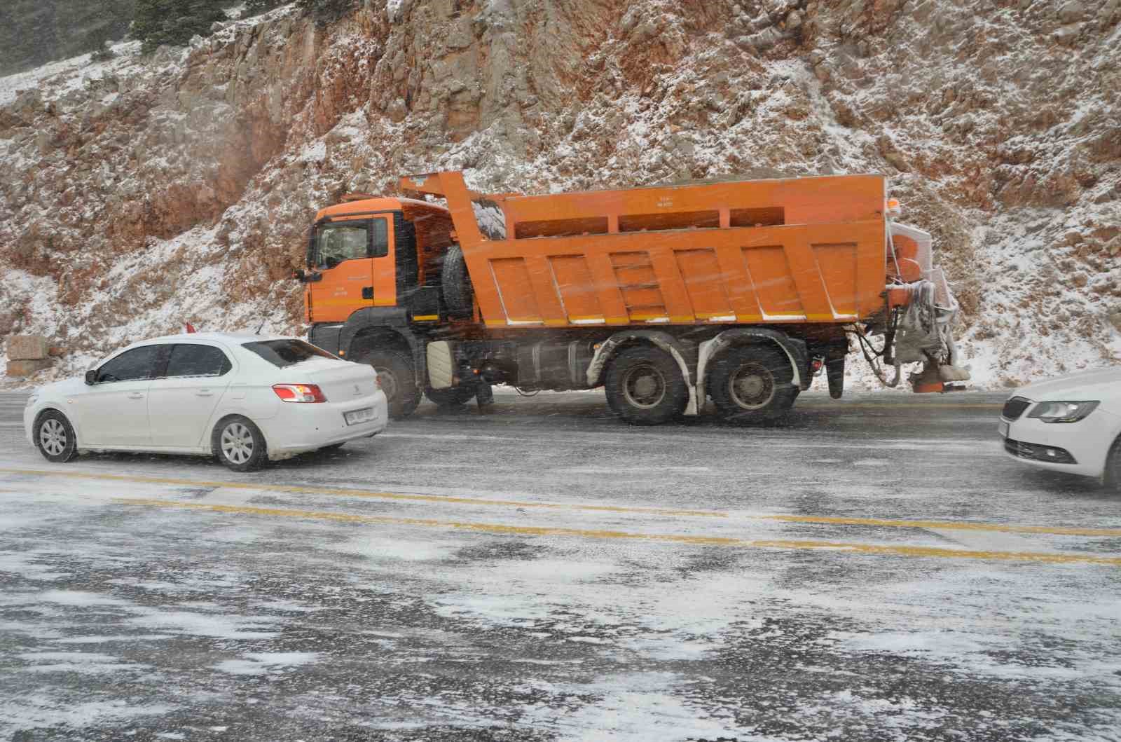 Antalya-Konya kara yolunda kar yağışı başladı. Ekipler ulaşımın aksamaması için çalışmalarını aralıksız sürdürüyor.