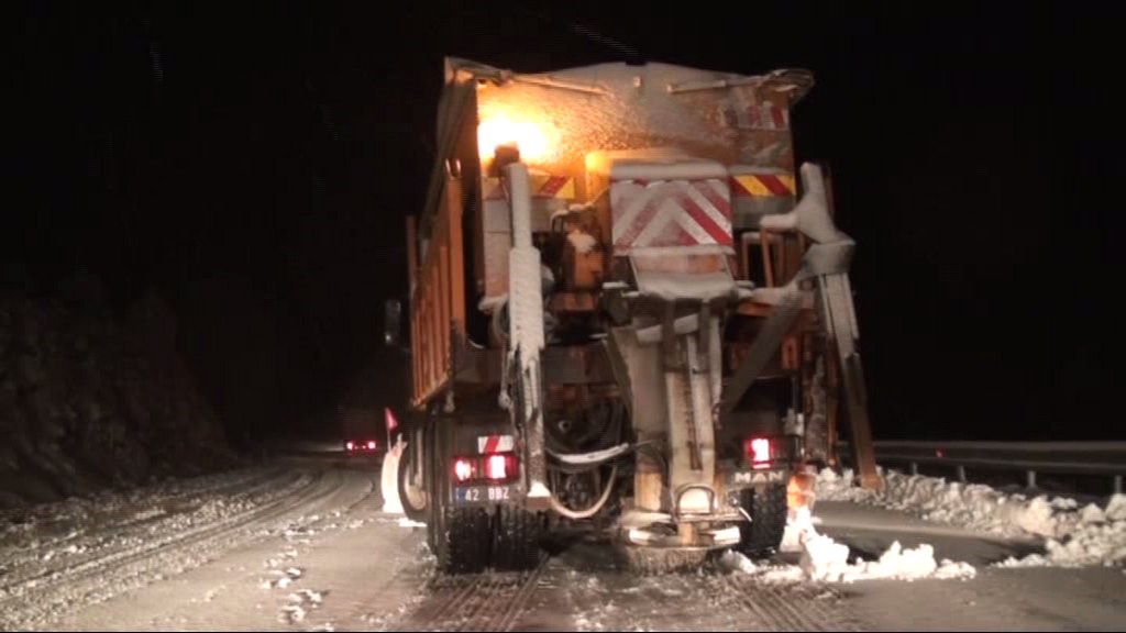 Akseki-Seydişehir karayolu 1825 metre rakımlı Alacabel’de kar yağışı sabah saatlerine kadar etkisini sürdürürken, Karayolları ekipleri çok sayıda iş makinası ile kar temizleme ve tuzlama çalışmaları başlattı. Bölgede kar kalınlığı yer yer 20-25 santimetreye ulaştı. Kar yağışı sabah saatlerinde etkisini yitirirken Karayolları ekipleri yol kenarında biriken karları temizleme ve buzlanma nedeniyle tuzlama çalışmalarını sürdürüyor.