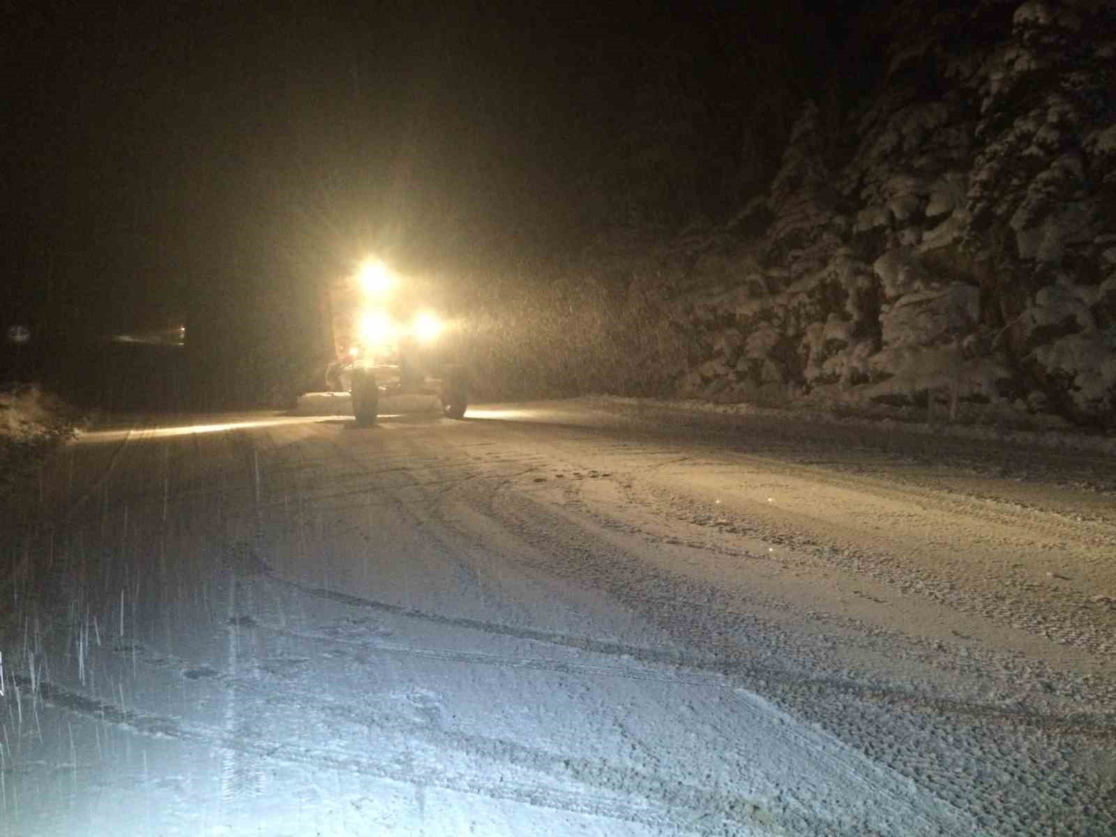 Antalya’da 2 gündür etkili olan yağmurun ardından Antalya’yı Konya’ya bağlayan Akseki-Seydişehir Karayolu üzerinde bin 825 metre rakımlı Alacabel mevkiinde yoğun kar yağışı başladı. Kar kalınlığı yer yer 10-15 santimetreye kadar ulaşırken, ekipler çok sayıda iş makinası ile yolda biriken karı temizleniyor.