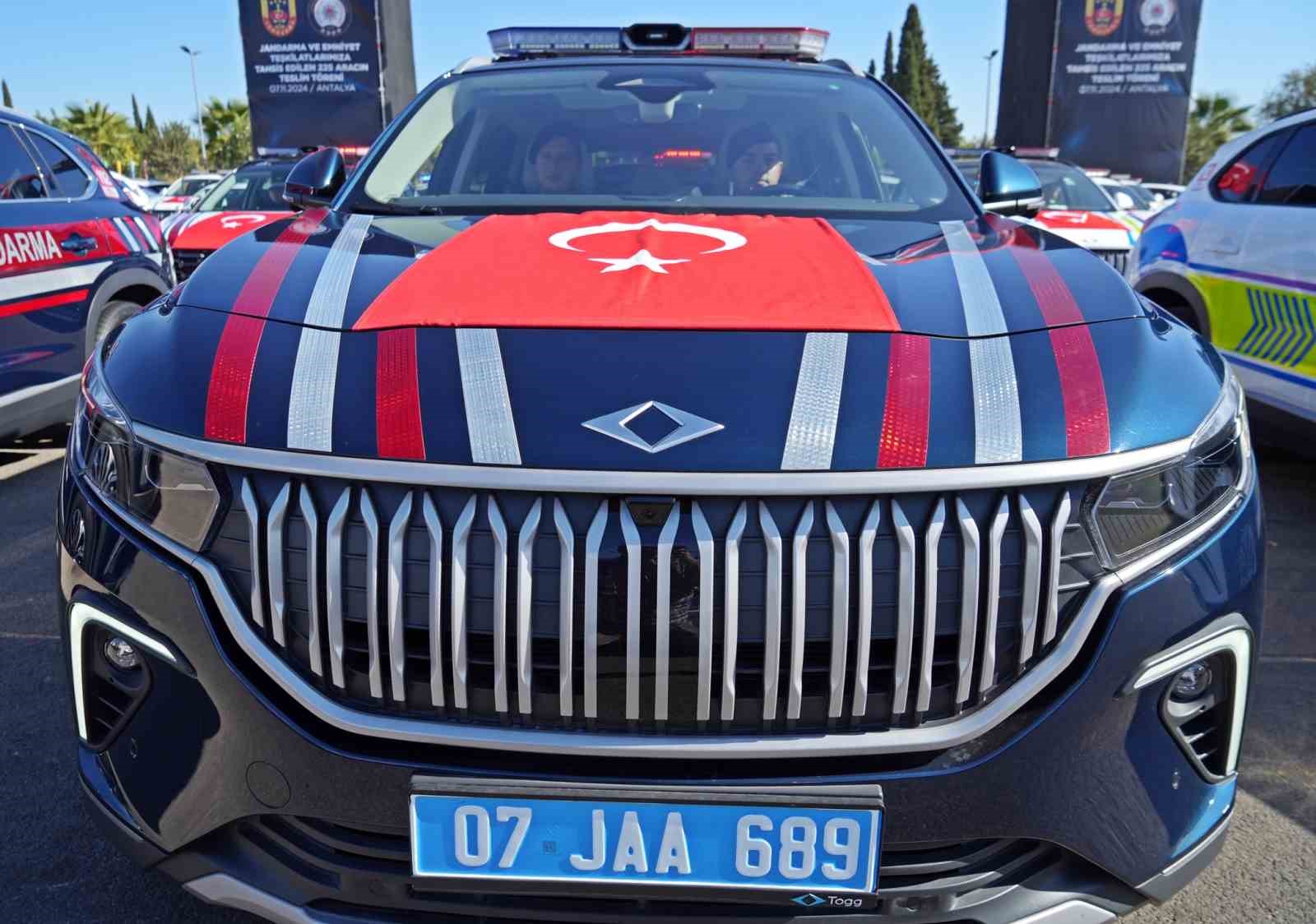 İl Emniyet Müdürlüğü ve İl Jandarma Komutanlığı’na tahsis edilen 225 aracın göreve başlaması için Kepez ilçesindeki Dokuma Park yanında tören düzenlendi. Aralarında yerli üretim Togg’un da bulunduğu araçların teslim töreninde konuşan Antalya Valisi Hulusi Şahin, tüm Türkiye’de dağıtımına başlanan araçlardan Antalya’nın payına 225 araç düştüğünü kaydetti.