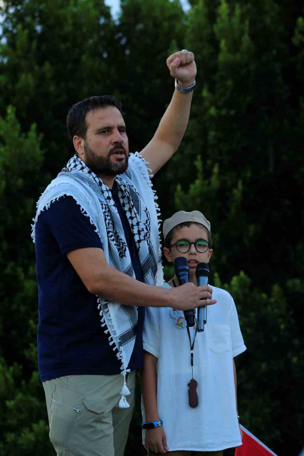 İsrail’in 7 Ekim 2023 tarihinde başlattığı saldırı ve işgalin birinci yıldönümünde binlerce Antalyalı, ‘Filistin’e Destek Yürüyüşü’nde bir araya geldi. Aydın Kanza Parkı’nda ellerindeki Türkiye ve Filistin bayrakları ile toplanan vatandaşlar, tekbir ve sloganlarla Cumhuriyet Meydanı’na kadar yürüdü. Grup adına basın açıklaması yapan Antalya Kudüs Platformu Başkanı Mustafa Erduran, Yahudilerin İsrail’in kuruluş sürecinde Filistin topraklarının yüzde 5,6’sına sahipken BM tarafından 1948 yılında Filistin topraklarının yüzde 56’sının gasp edilerek İsrail’e verildiğini belirtti. 1897 yılında temeli atılan işgalin hedefinin Arz-ı Mevud olarak ifade edilen tüm coğrafyayı işgal etmek olduğunu söyleyen Erduran, “Bugün İsrail, İslam dünyasının kalbine saplanmış gayrimeşru bir işgal yönetimidir. Yüz yıldır belirli aralıklarla devam eden vahşi katliam ve işgal eylemleri nedeniyle sabıkası soykırımlarla dolu olan İsrail, özellikle bir yıldan beri Filistin’de soykırım suçunu en vahşi şekilde işlemektedir. Kesintisiz devam eden saldırılar sonucu on binlerce çocuk, kadın, yaşlı, hasta, engelli ve yüzlerce gazeteci, sağlık çalışanı, insani yardım çalışanı katledildi. İsrail’in terörü karşısında BM ve AB gibi uluslararası örgütler engelleyici bir rol üstlenmedikleri gibi İsrail’i koruyup kollamaktadırlar” ifadelerini kullandı.