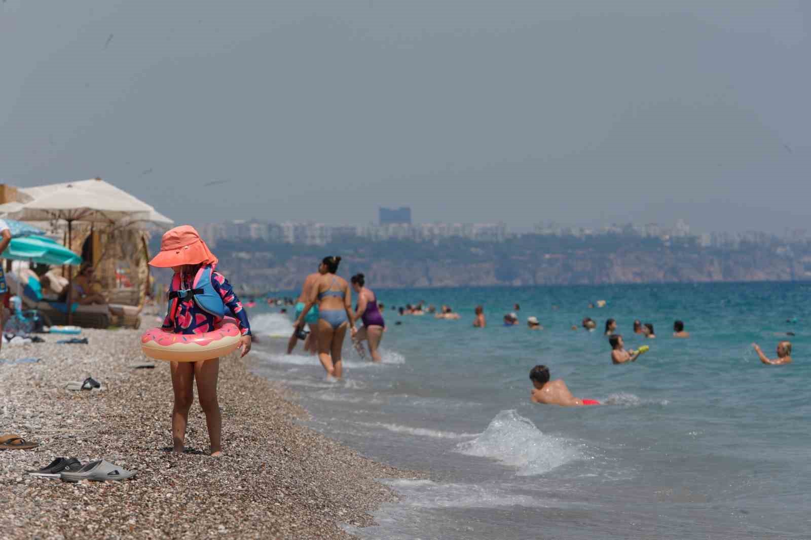 Yaklaşık 1 haftadır Afrika ve Basra üzerinden gelen sıcak hava dalgasının etkisi altında bulunan Antalya’da hafta sonunu fırsat bilen kent sakinleri ve yabancı turistler serinlemek için Konyaaltı Sahili’ni tercih etti. Termometrelerin 37 dereceyi gösterdiği kentte deniz suyu sıcaklığı 32 derece oldu. Nem oranının yüzde 70 dolaylarında seyrettiği Antalya’da, hissedilen hava sıcaklığı ise 45 derece olarak ölçüldü. Sıcaktan bunalarak Konyaaltı Sahilini dolduran on binlerce insan Akdeniz’in serin sularına kendini bıraka ferahlamayı tercih etti.
