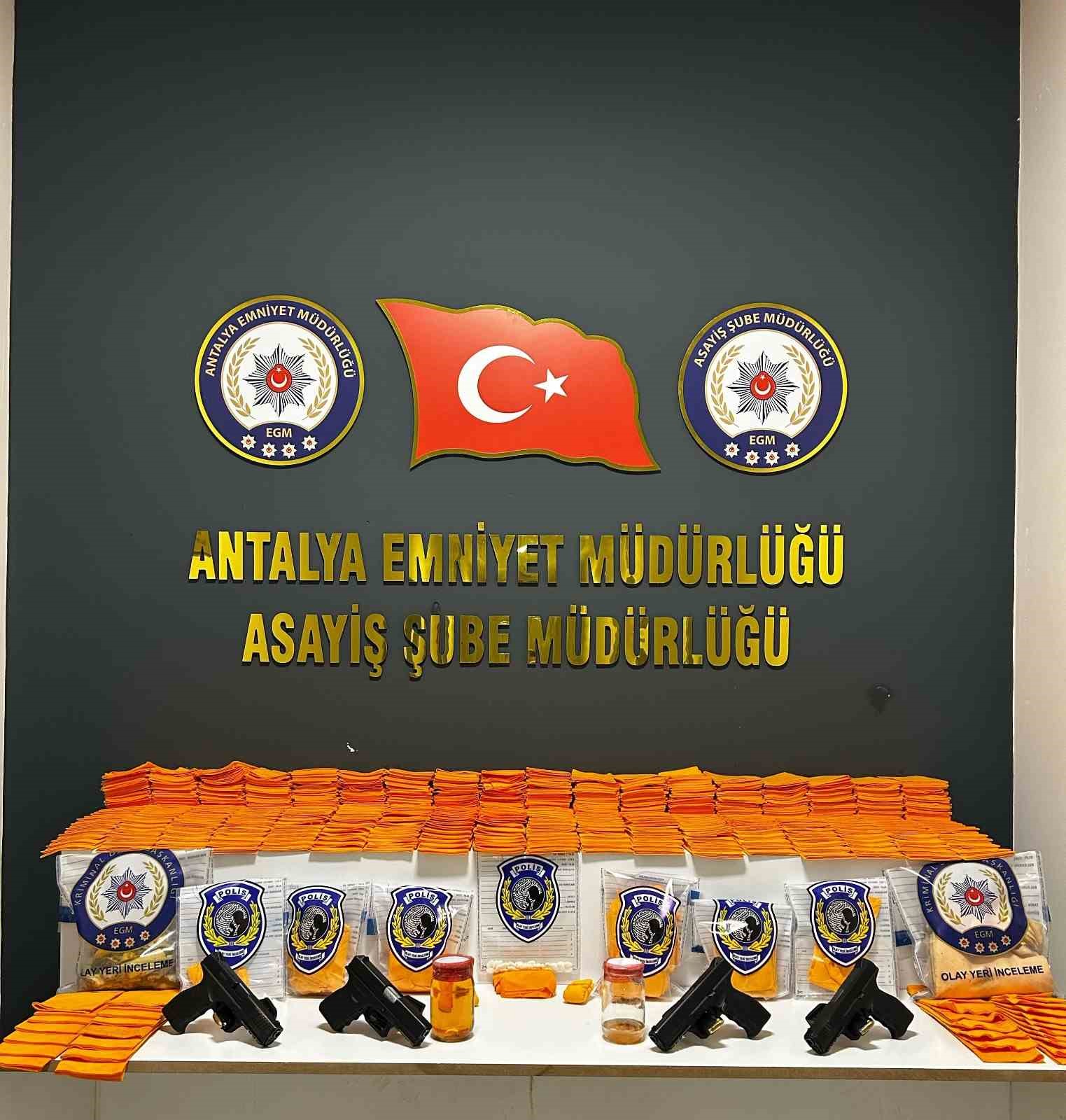 Antalya’nın Kepez ilçesi Şelale Mahallesi’nde bir işletmeye yönelik gerçekleştirilen silahlı saldırının şüphelileri, emniyet güçlerinin titiz çalışmaları sonucu yakalandı. Edinilen bilgilere göre, olaya karıştıkları belirlenen S.T., D.B. ve U.C.S. isimli şahıslar; düzenlenen operasyonla gözaltına alındı. Şüphelilerin üzerlerinde ve saklandıkları alanlarda yapılan aramalarda 4 adet ruhsatsız tabanca, 7 adet fişek, 680 adet (yaklaşık 4 milyon 350 bin kullanımlık) sentetik kannabinoid (A4), 712 gram uyuşturucu yapımında kullanılan fubunika maddesi, 32 adet uyuşturucu hap ele geçirildi.