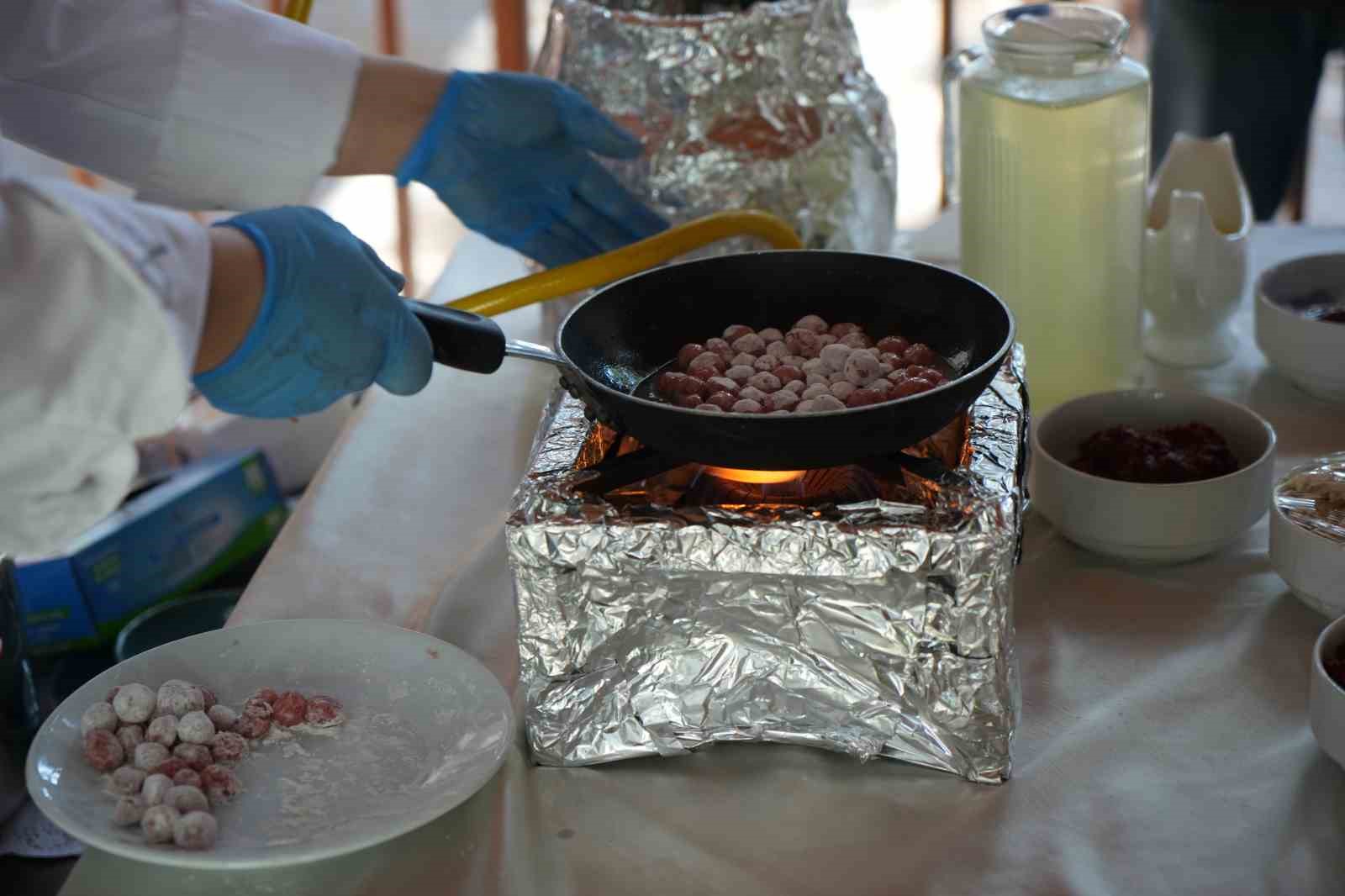 Antalya’da düzenlenen Türk Mutfağı Haftası etkinliğinde büyükanneler, torunlarıyla birlikte coğrafi işaretli gülüklü (hülüklü) çorbası hazırladı.