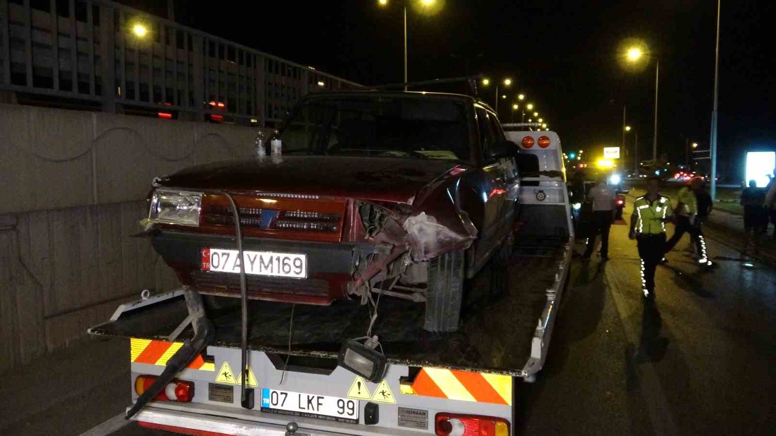 Kaza, Antalya-Alanya D-400 Karayolu Sorgun-Otogar Köprülü Kavşak yan yolda meydana geldi. Edinilen bilgiye göre, Mehmet Ali O. yönetimindeki 07 AYM 169 plakalı Tofaş marka otomobil, sürücüsünün direksiyon hakimiyetini kaybetmesi sonucu aynı yönde seyreden Tefik K.’nin kullandığı 07 AVE 116 plakalı hafif ticari araca çarptı.
