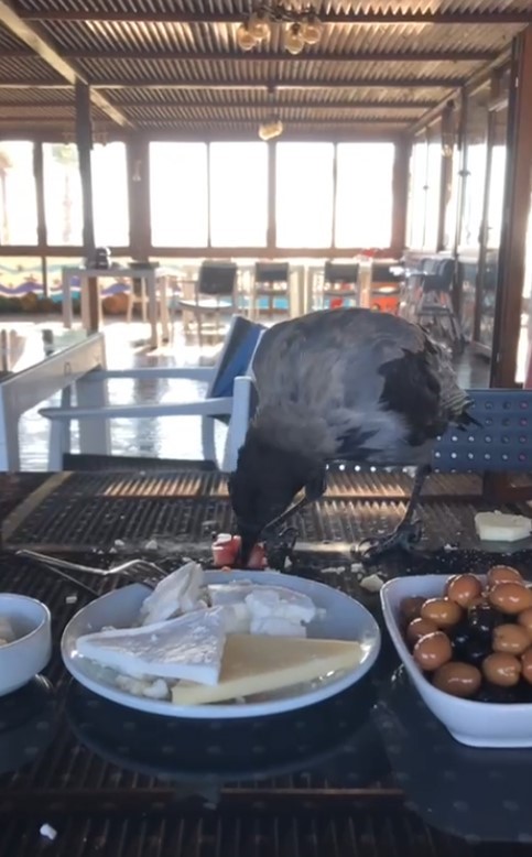 Antalya’nın Serik ilçesinde bir restorana gelen karga, kahvaltı yapanların masasında karnını doyurdu. O anlar cep telefonu ile kaydedildi.