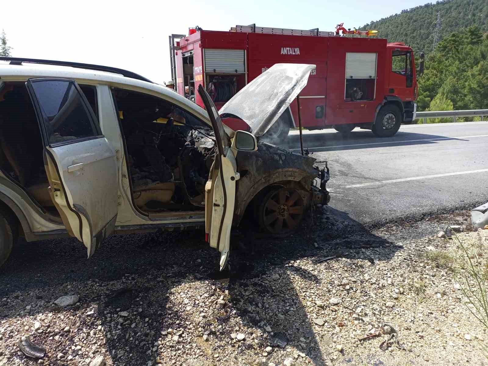 Olay, saat 15.00 sıralarında Antalya’yı Konya’ya bağlayan Akseki-Seydişehir karayolu Kumluboğaz mevkiinde meydana geldi. Cem K. idaresindeki 34 GKU 722 plakalı Chevrolet marka cipin motor kısmından duman çıktığını gören sürücü, aracı yol kenarında durdurduktan sonra cipten indi. Motorun alev aldığını gören çevredekiler, yangın tüpleri ile araca müdahale etmeye çalıştı. Bu sırada yoldan geçenlerin yaptığı ihbar üzerine olay yerine Antalya Büyükşehir Belediyesi Akseki itfaiye birimi, Akseki Bölge Trafik ve Akseki İlçe Jandarma Komutanlığına bağlı ekipler sevk edildi. Kısa sürede olay yerine gelen itfaiye ekipleri tarafından araçtaki yangın söndürüldü.