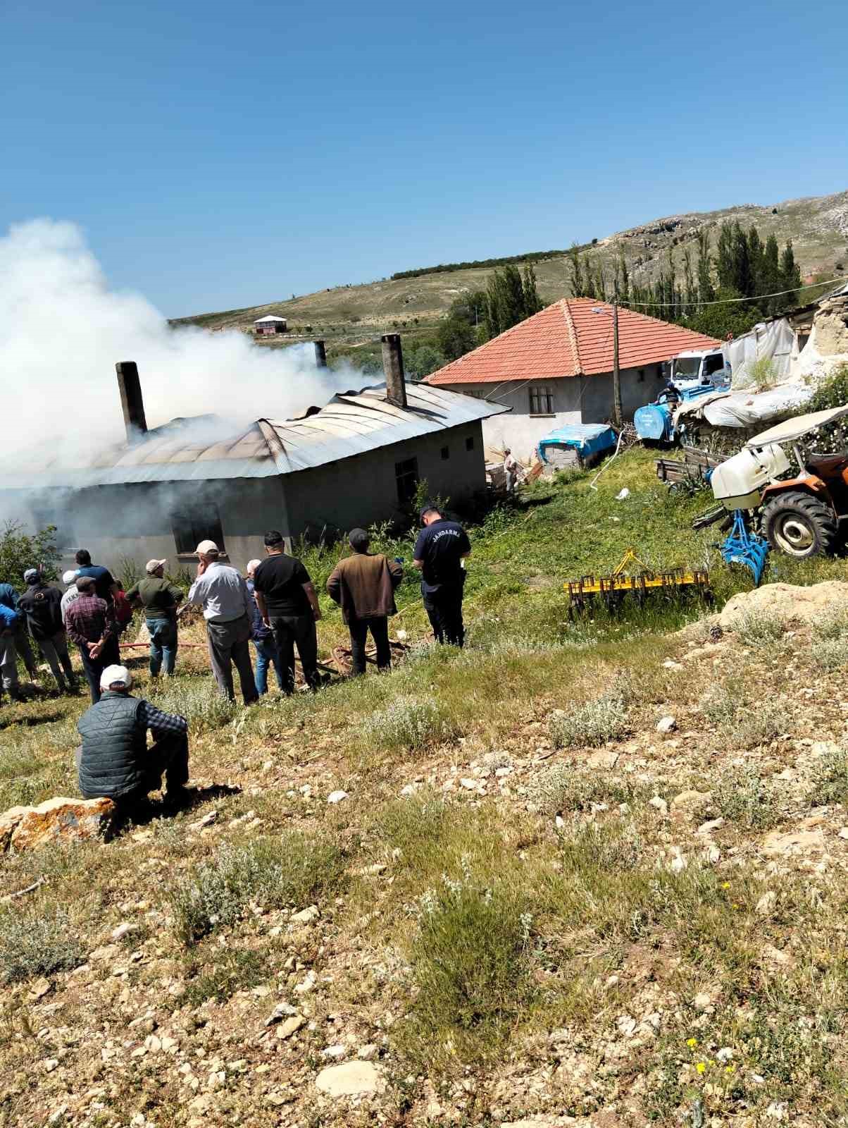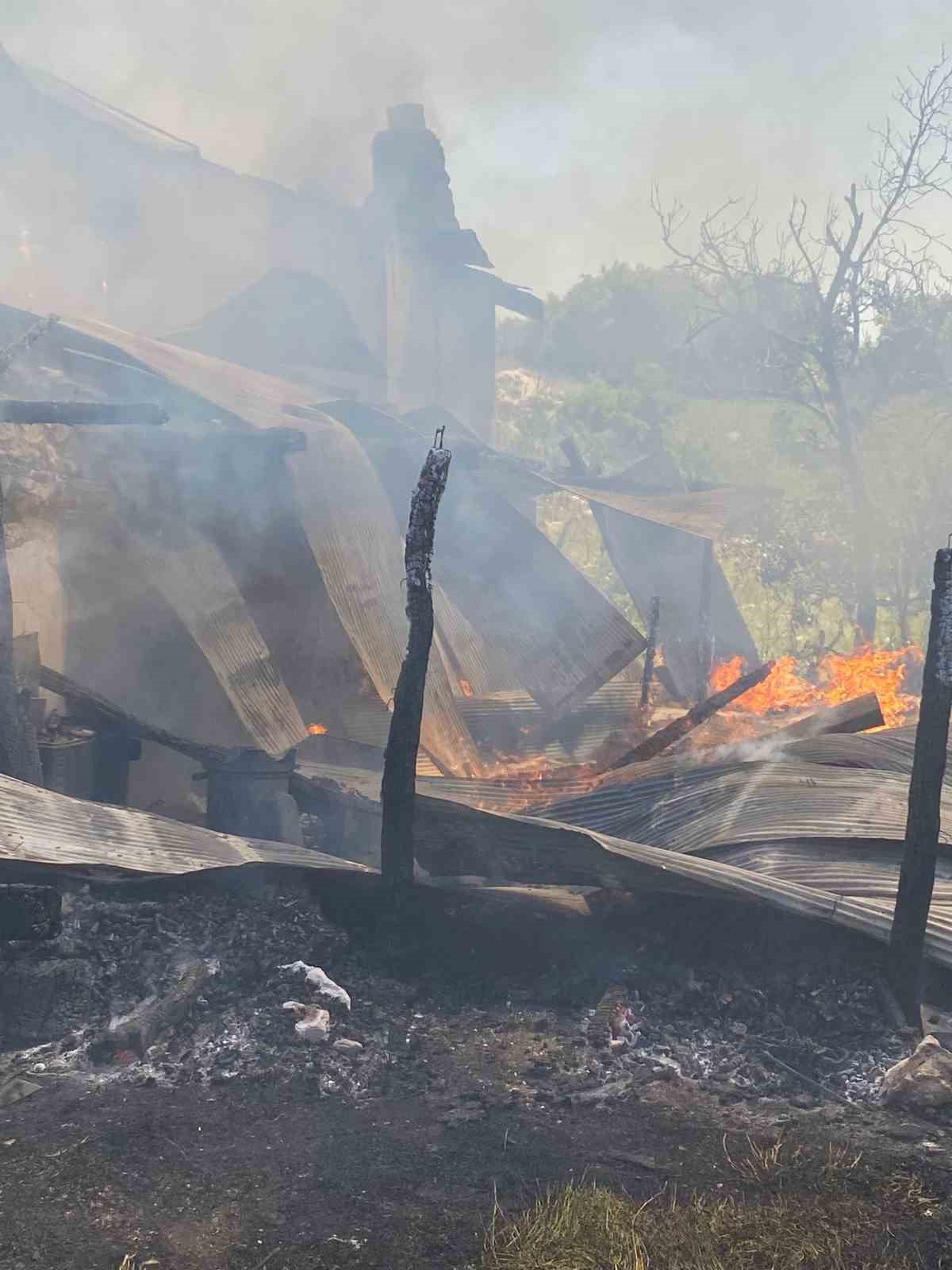 Antalya’nın Korkuteli ilçesinde çıkan yangında, yaşlı çiftin evi kullanılamaz hale gelirken 2 küçükbaş kurbanlığı da telef oldu.