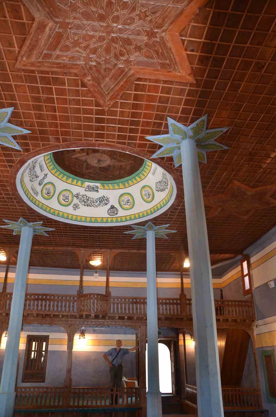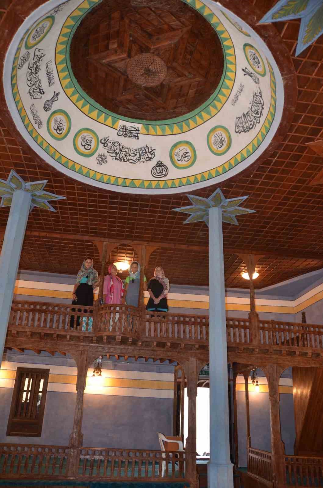 Caminin dikkati çeken bir başka özelliğinin de duvarların içine yerleştirilen küpler olduğuna değinen Can, bu sayede içeride akustiğin sağlandığını vurguladı. Can, “Sistem sayesinde caminin herhangi bir noktasında yapılan konuşmanın, caminin tüm köşelerinden rahatlıkla dinlenebiliyor. Burada nadir bir tekniğin kullanıldığına şahit oluyoruz. Camimiz restorasyon esnasında eski hali neyse o şekilde restore edildi. Bütün ahşap dokuları vaktiyle nasılsa o şekilde muhafaza edildi. Camimizin son yıllarda rağbete mazhar olduğunu söyleyebiliriz. Yılda 50-100 bin arasında yerli ve yabancı ziyaretçiler gelmektedir” ifadelerini kullandı.