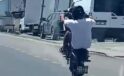 Hatay’da motosikletlinin tehlikeli hareketleri yürekleri ağza getirdi